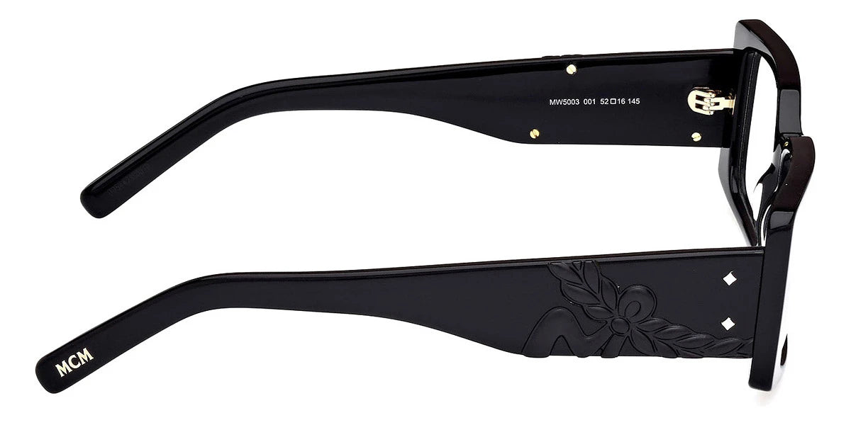 Shiny Black (001) Eyeglasses (MW5003 001 52) by MCM™. Size: 52-16-145, Shape: Rectangle, Material: Plastic.