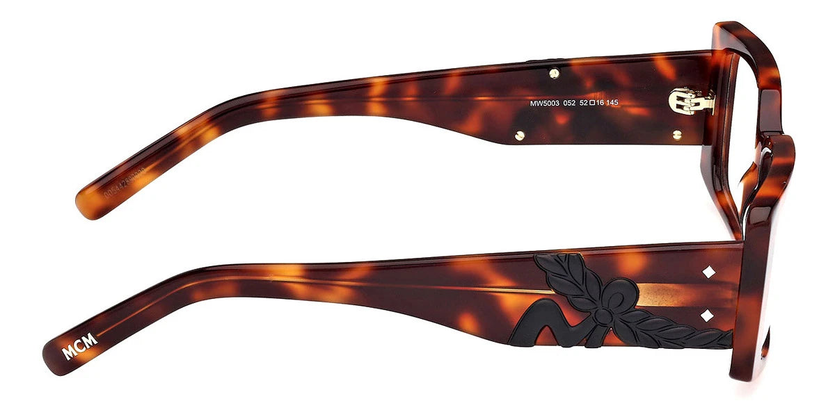 MW5003 Eyeglasses by MCM™. The rectangle shape design feature a full rim plastic frame. This model is available in three different color combinations and sizes. The worldwide renowned MCM brand presents a new collection of eyeglasses that combines a modern and fresh design with timeless luxury. Appealing to the nomad generation – creative and motivated young people who appreciate both functionality and glamour, MCM frames combine exceptional craftsmanship and contemporary design. The timeless silhouettes are embellishes with captivating prints and temple logo plaques for an incredibly chic finish.