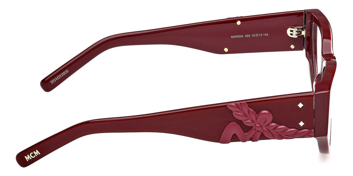 Shiny Bordeaux (069) Eyeglasses (MW5004 069 53) by MCM™. Size: 53-15-145, Shape: Cat-Eye, Material: Plastic.