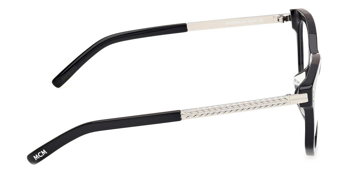 Shiny Black (001) Eyeglasses (MW5017-D 001 54) by MCM™. Size: 54-17-140, Shape: Geometric, Material: Plastic.