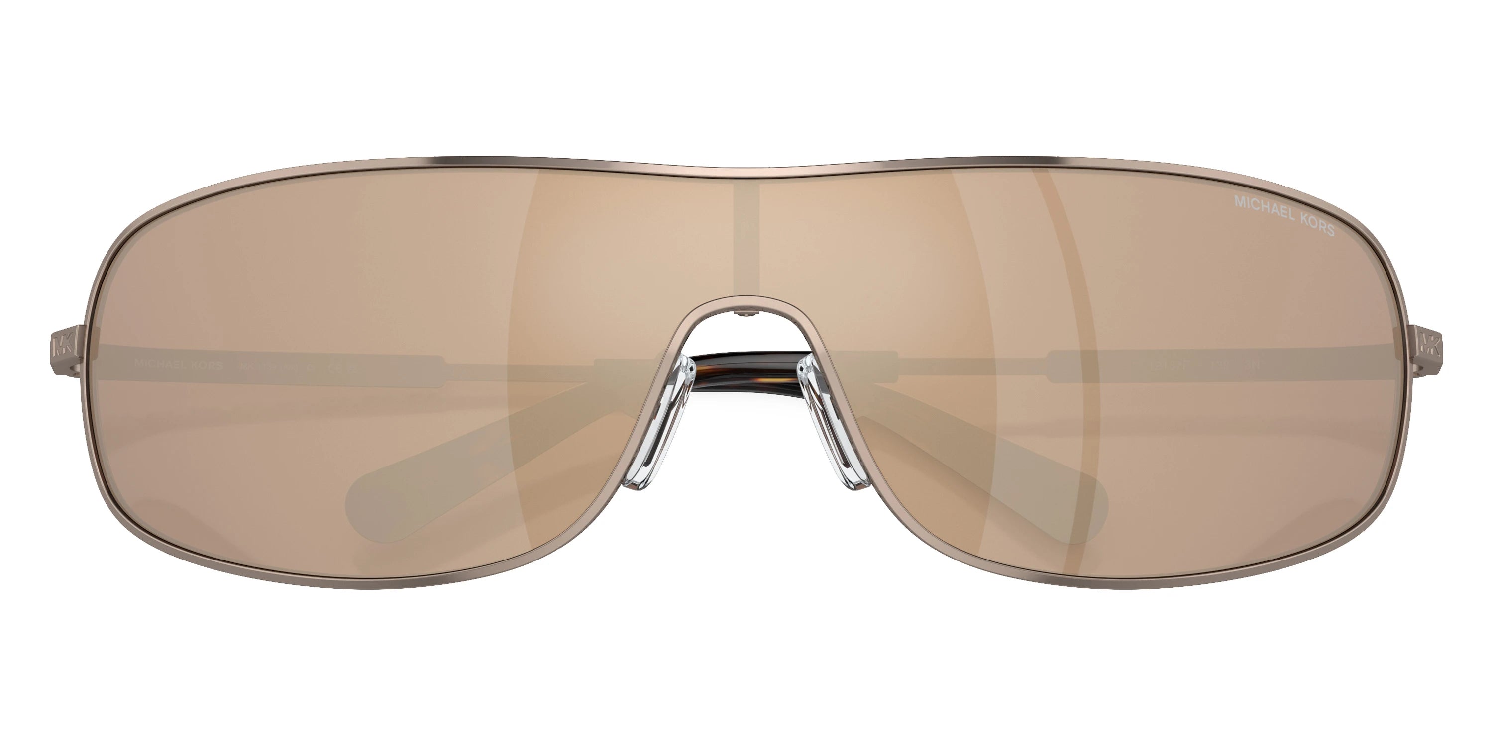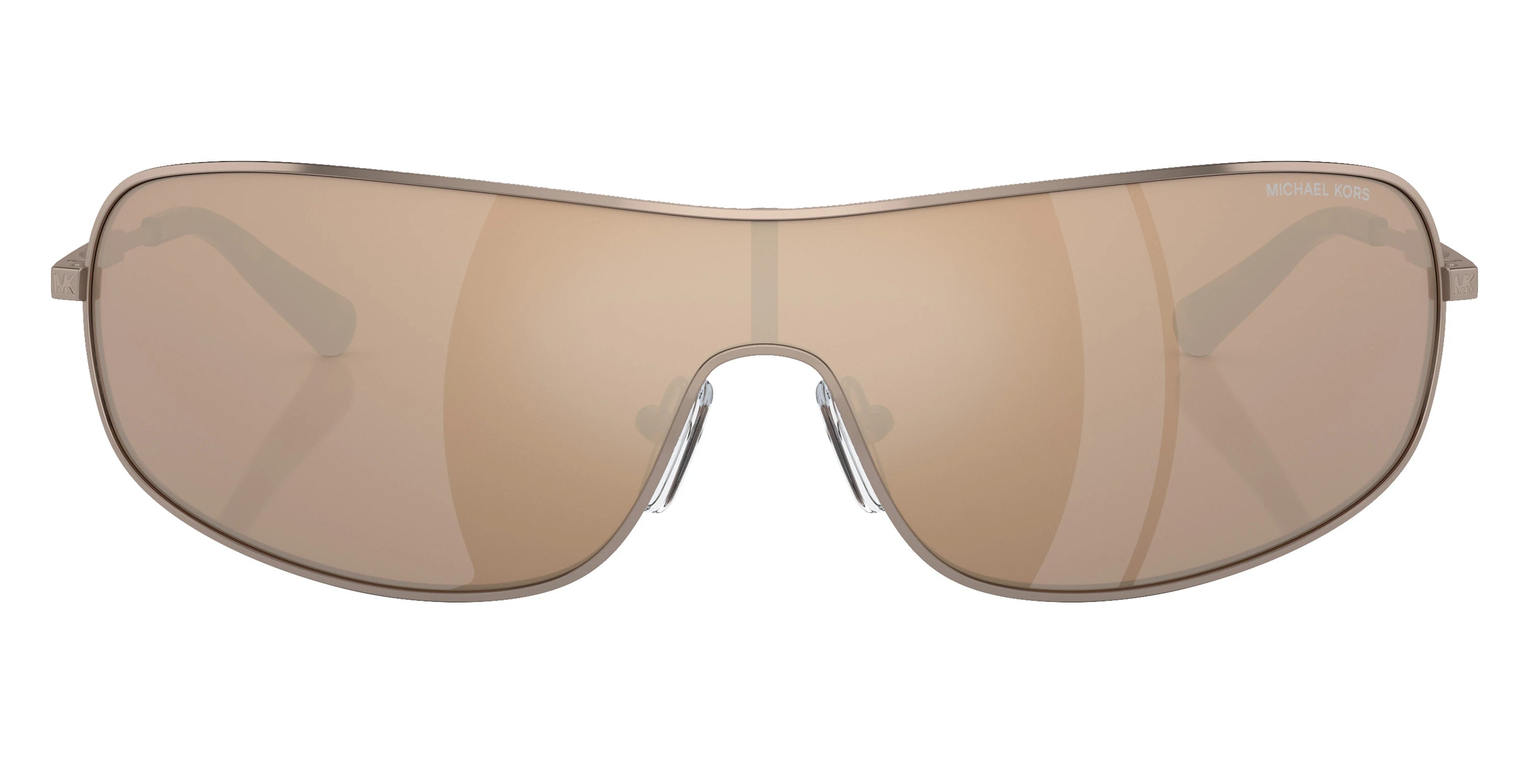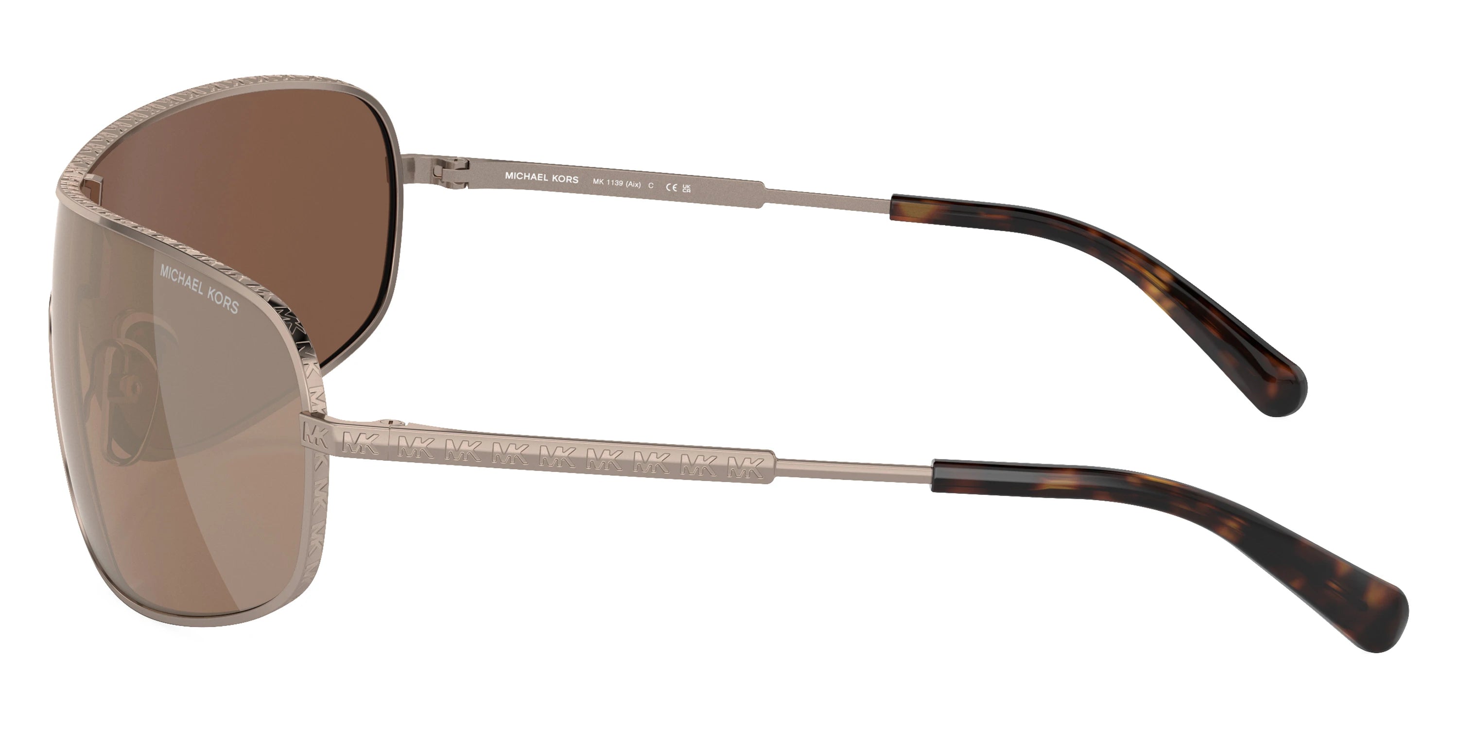 Mink (12137P) Sunglasses with Gold Mirrored lenses (Aix MK1139 12137P 138) by MICHAEL KORS™. Size: 138-0-115, Shape: Rectangle, Material: Metal.