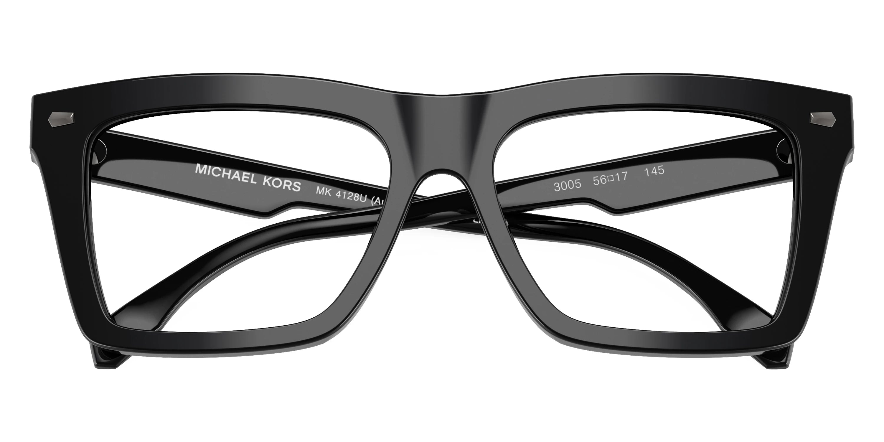 Black (3005) Eyeglasses (Augusta MK4128U 3005 56) by MICHAEL KORS™. Size: 56-17-145, Shape: Square, Material: Acetate.