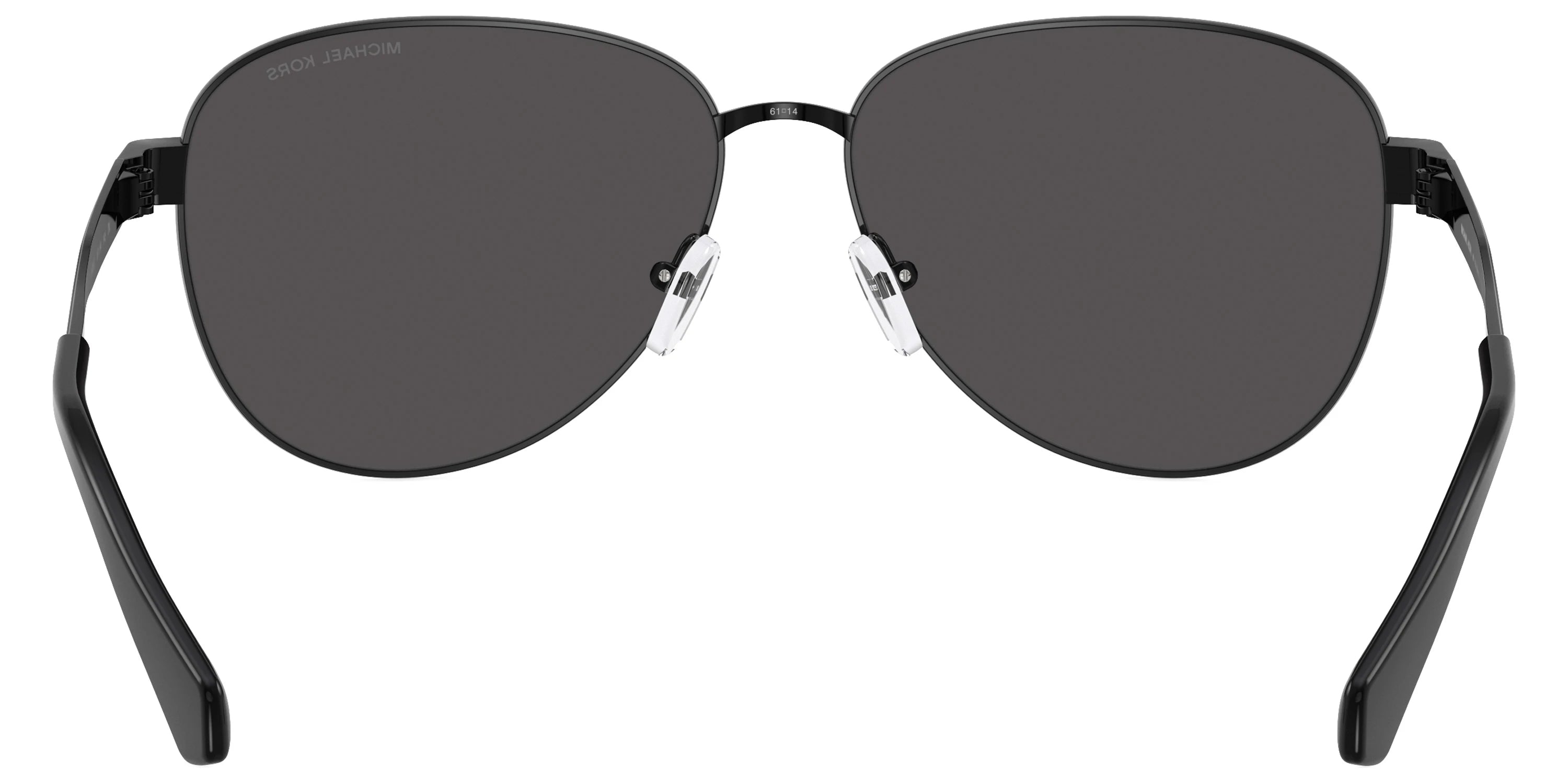 Black Shiny (100587) Sunglasses with Dark Gray Solid lenses (Biarritz MK1160 100587 59) by MICHAEL KORS™. Size: 59-14-145, Shape: Aviator, Material: Metal.