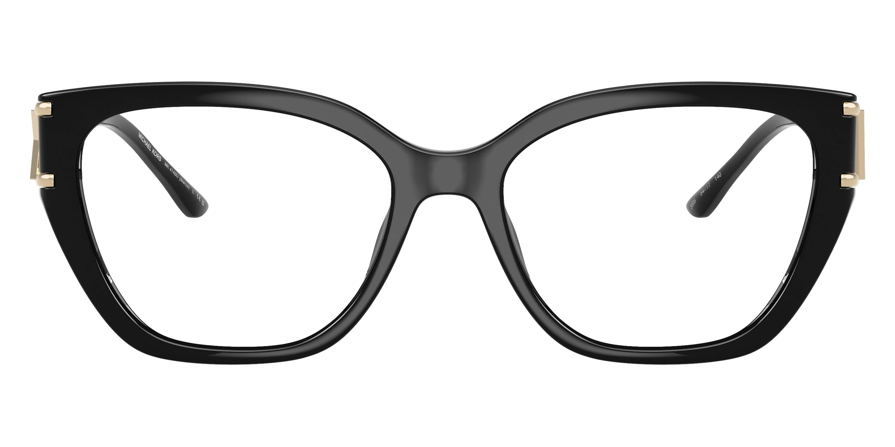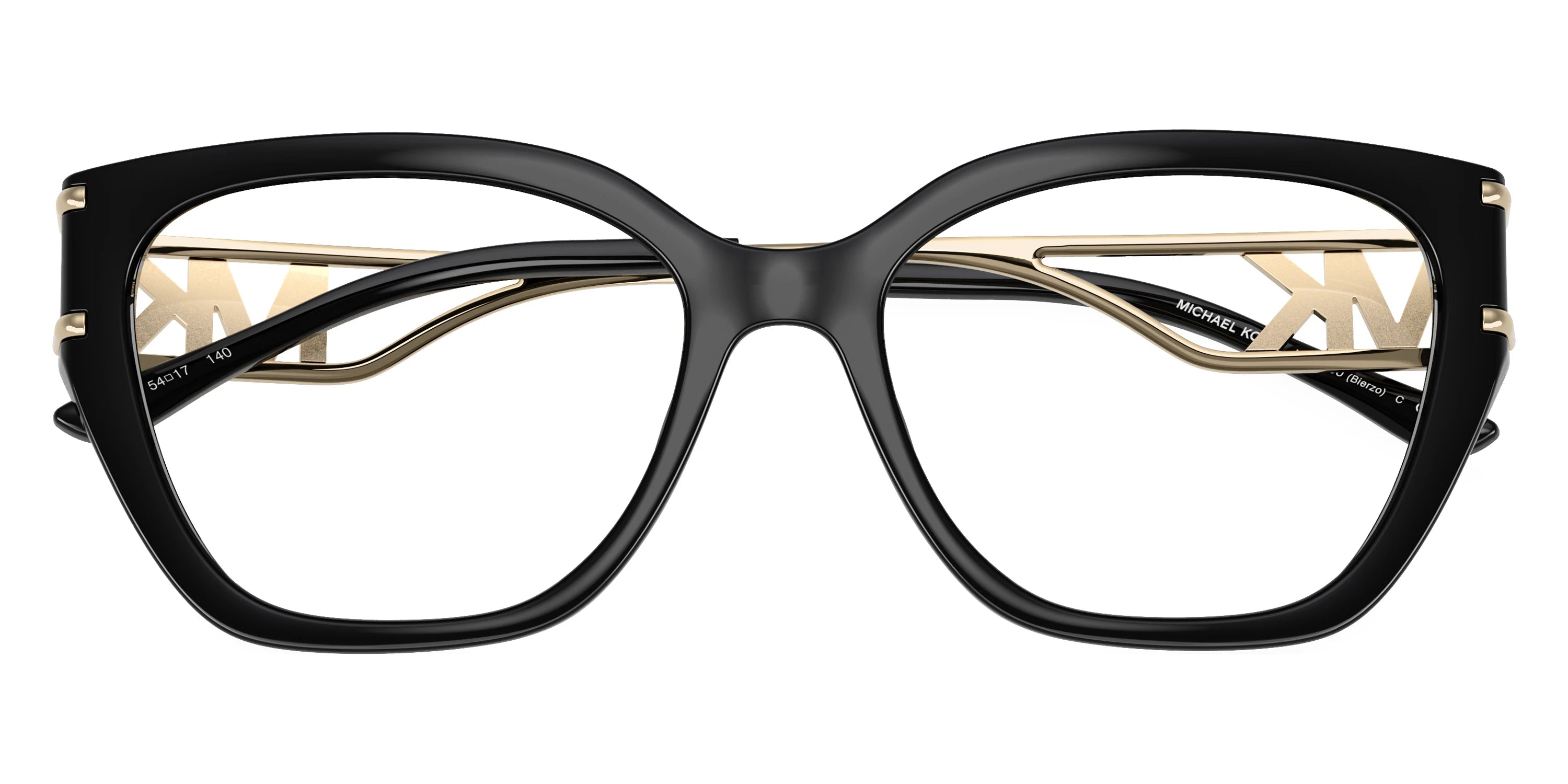 Black/Light Gold (3005) Eyeglasses (Bierzo MK4140U 3005 54) by MICHAEL KORS™. Size: 54-17-140, Shape: Square, Material: Injected and Metal.