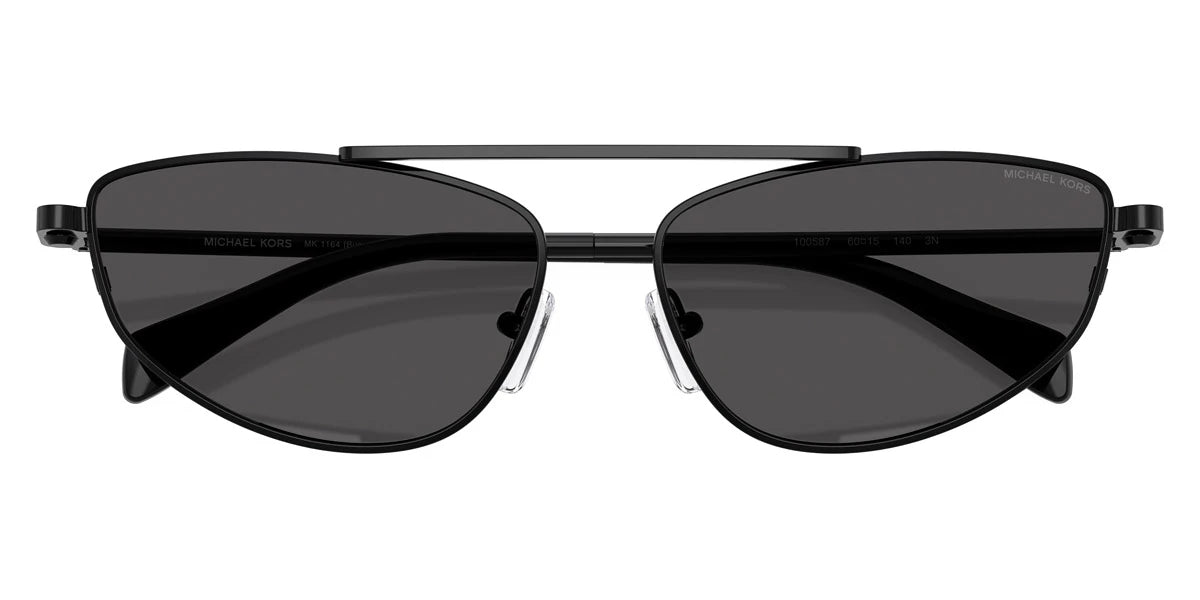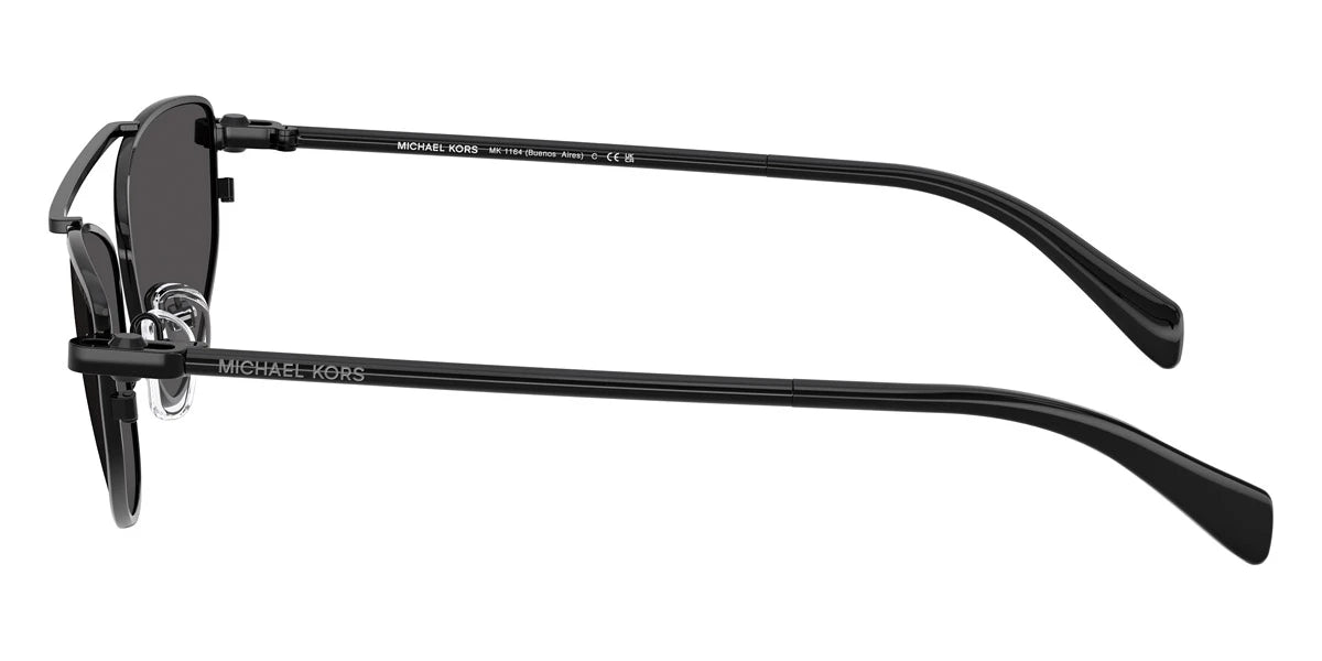 Yellow Gold Shiny (189687) Sunglasses with Dark Gray Solid lenses (Buenos Aires MK1164 189687 60) by MICHAEL KORS™. Size: 60-15-140, Shape: Irregular, Material: Metal.
