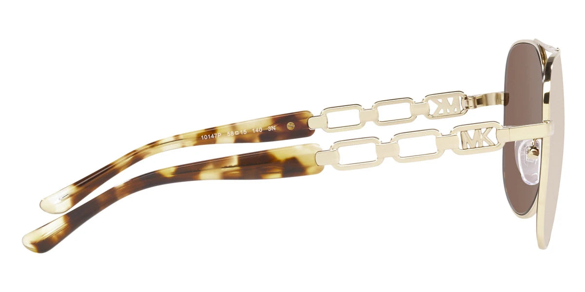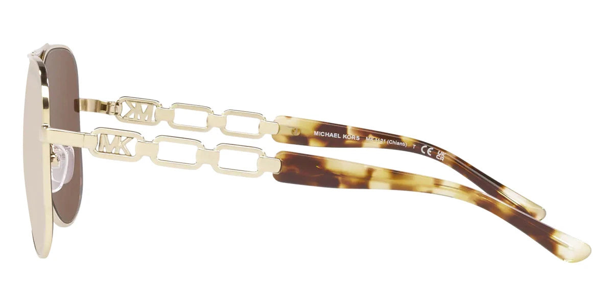 Light Gold (10147P) Sunglasses with Gold Mirrored lenses (Chianti MK1121 10147P 58) by MICHAEL KORS™. Size: 58-15-140, Shape: Aviator, Material: Metal.