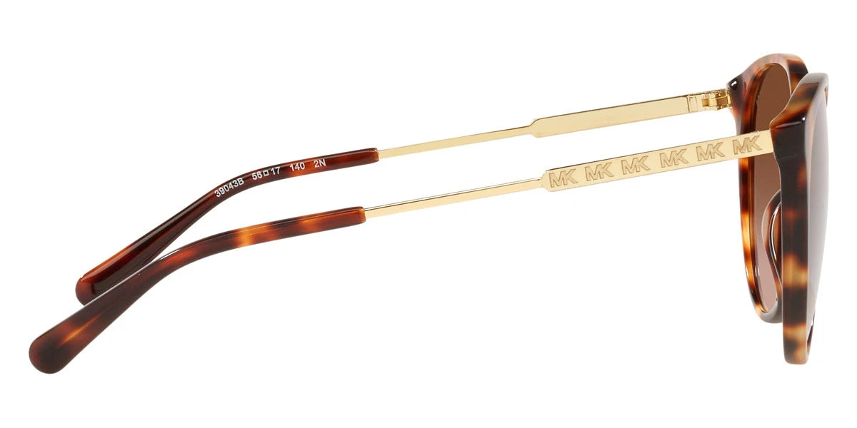 Amber Tortoise (39043B) Sunglasses with Brown Gradient lenses (MK2168 39043B 56) by MICHAEL KORS™. Size: 56-17-140, Shape: Round, Material: Plastic and Metal.