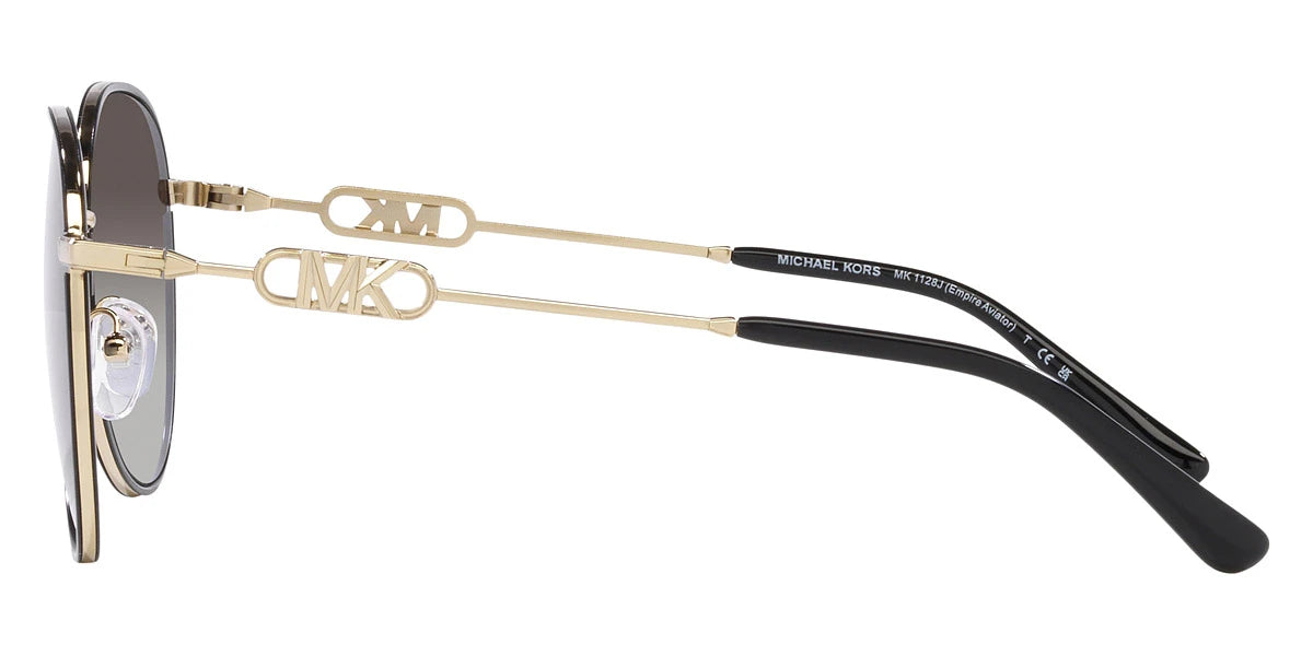 Light Gold/Black (10148G) Sunglasses with Dark Gray Gradient lenses (Empire Aviator MK1128J 10148G 58) by MICHAEL KORS™. Size: 58-17-145, Shape: Aviator, Material: Metal.