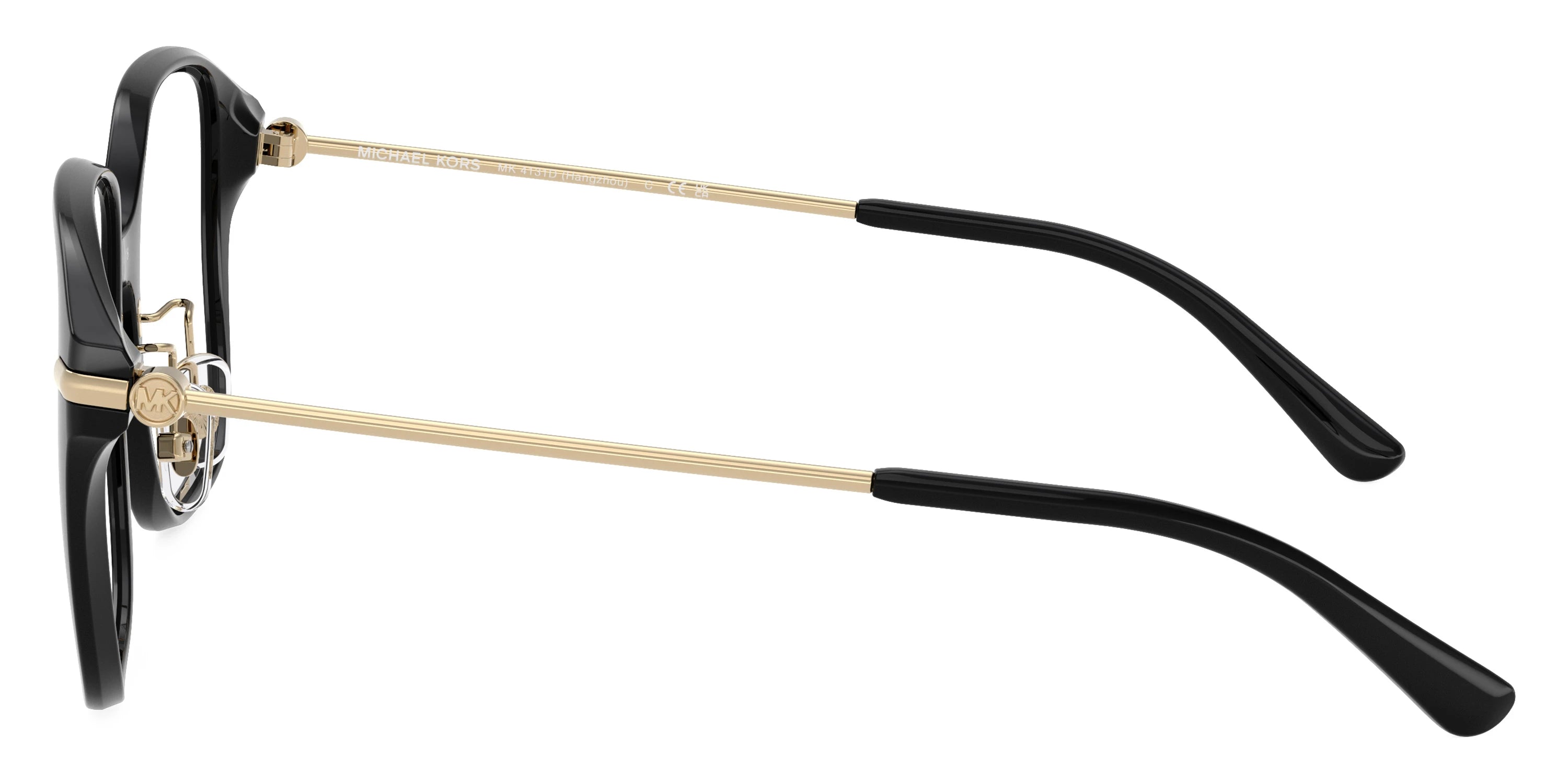 Black/Light Gold (3005) Eyeglasses (Hangzhou MK4131D 3005 54) by MICHAEL KORS™. Size: 54-18-145, Shape: Square, Material: Injected and Metal.