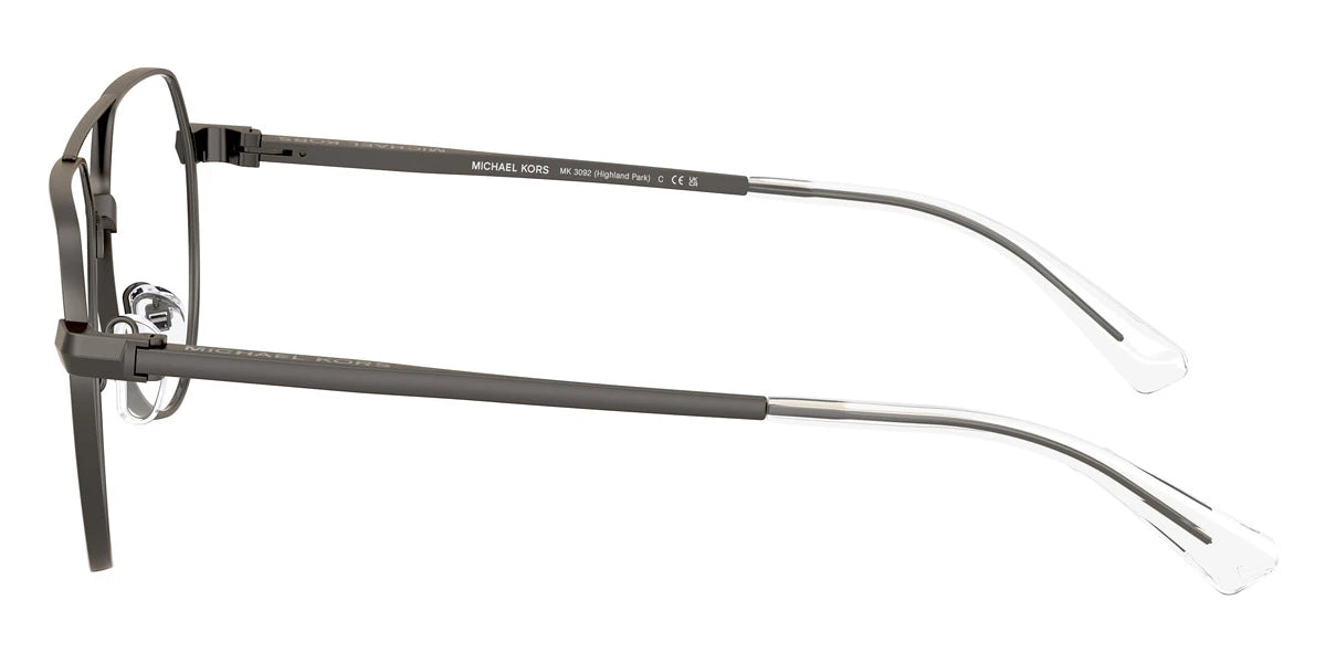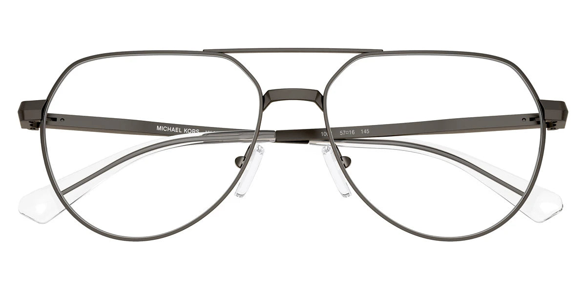 Matte Gunmetal (1002) Eyeglasses (Highland Park MK3092 1002 57) by MICHAEL KORS™. Size: 57-16-145, Shape: Aviator, Material: Metal.
