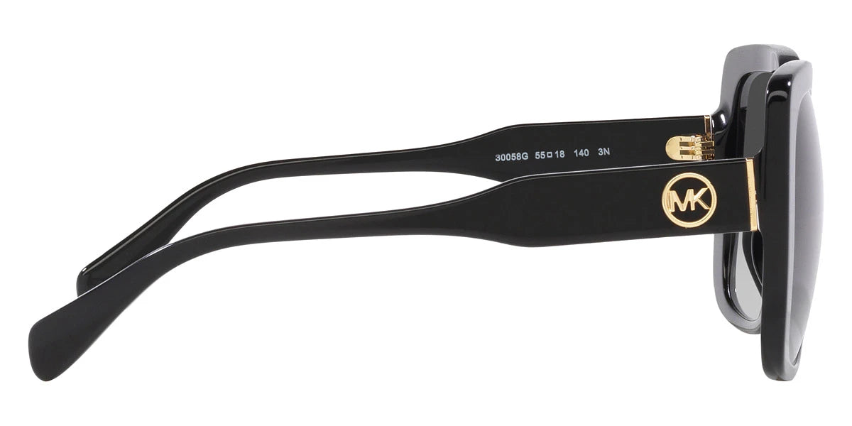 Black (30058G) Sunglasses with Gray Gradient lenses (Mallorca MK2183U 30058G 55) by MICHAEL KORS™. Size: 55-18-140, Shape: Square, Material: Acetate.