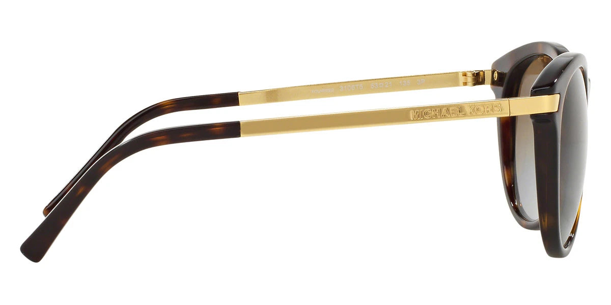 Dark Tortoise (3106T5) Sunglasses with Brown Gradient Polarized lenses (MK2023 3106T5 53) by MICHAEL KORS™. Size: 53-21-135, Shape: Round, Material: Plastic.