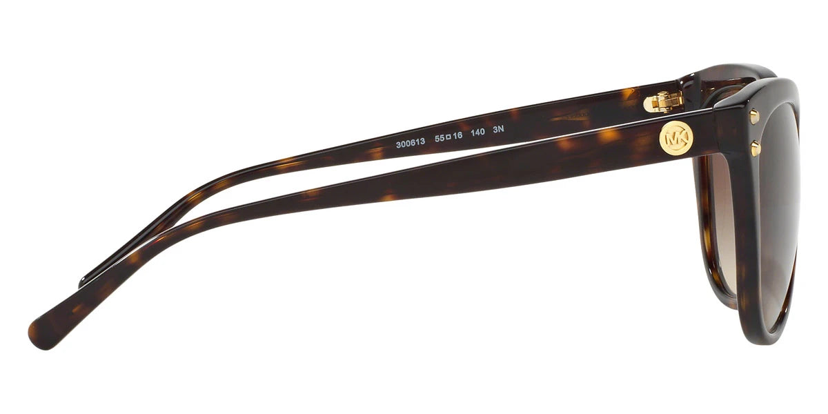 Dark Tortoise (300613) Sunglasses with Brown Gradient lenses (MK2045 300613 55) by MICHAEL KORS™. Size: 55-16-140, Shape: Cat-Eye, Material: Plastic.