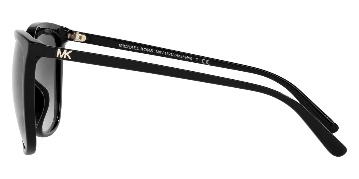 Black (30058G) Sunglasses with Dark Gray Gradient lenses (MK2137U 30058G 57) by MICHAEL KORS™. Size: 57-18-140, Shape: Square, Material: Plastic.