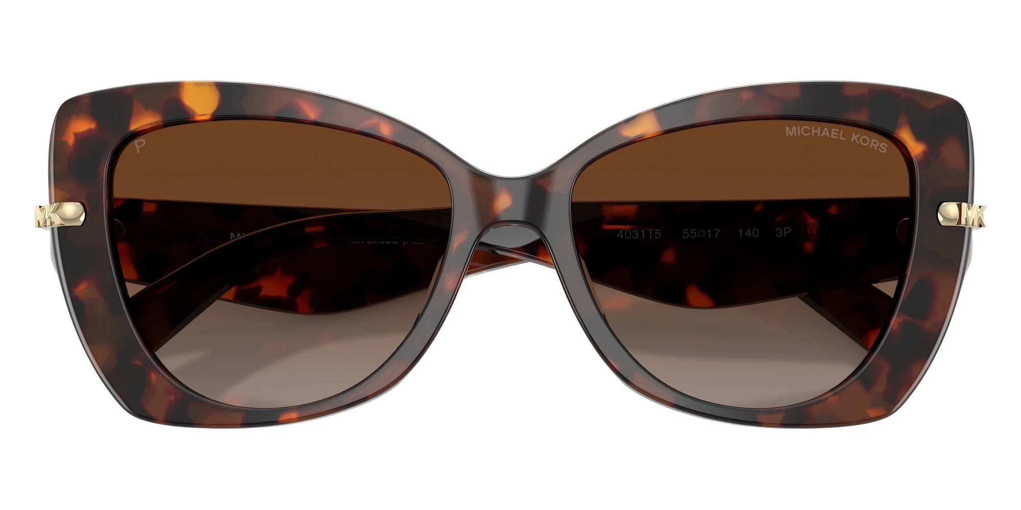 Luggage Tortoise (4031T5) Sunglasses with Brown Gradient Polarized lenses (MK2258U Atlanta 4031T5 55) by MICHAEL KORS™. Size: 55-17-140, Shape: Butterfly, Material: Acetate.
