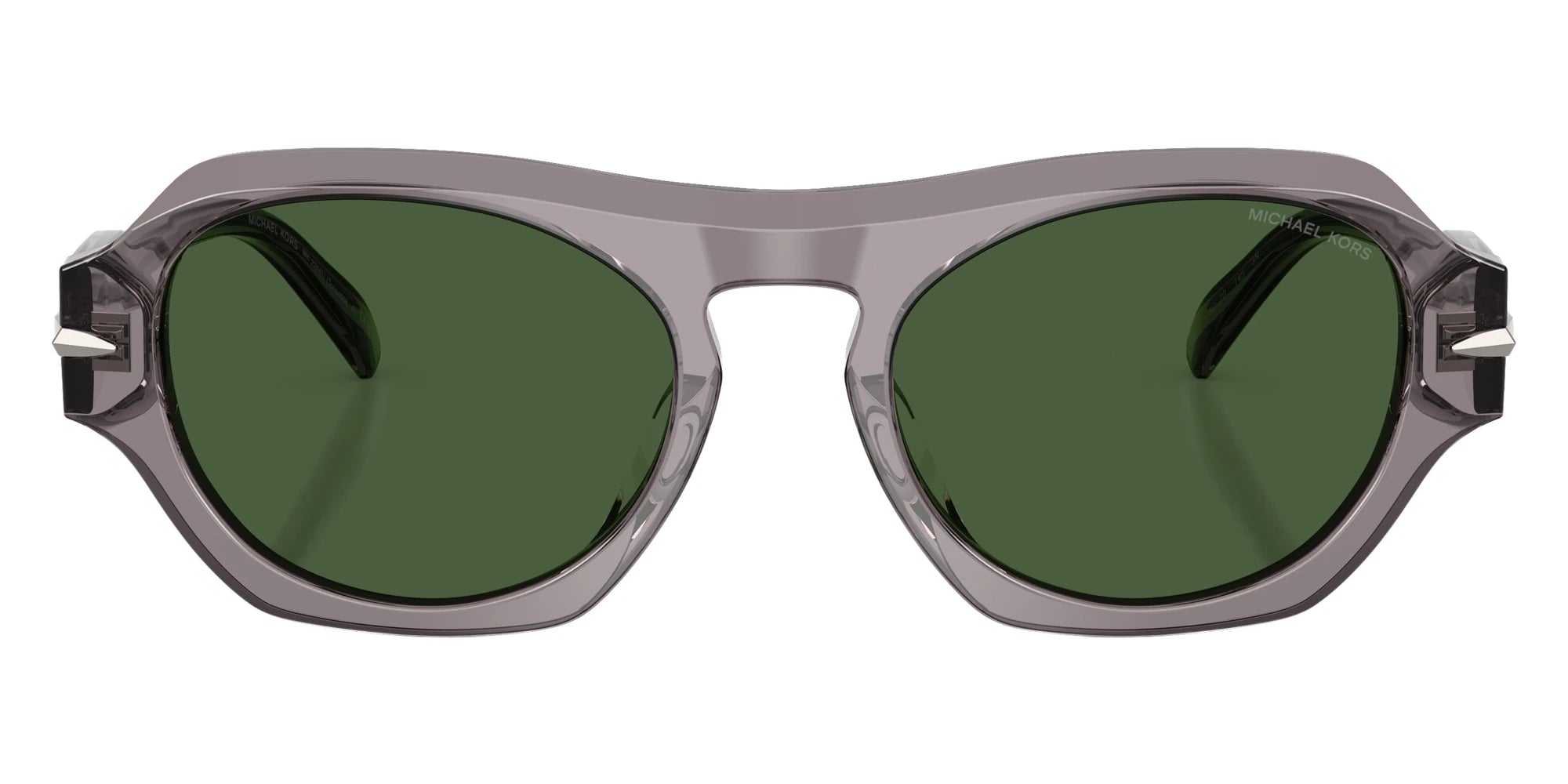 Gray Transparent (340071) Sunglasses with Green lenses (MK2266U Toronto 340071 52) by MICHAEL KORS™. Size: 52-20-145, Shape: Irregular, Material: Acetate.
