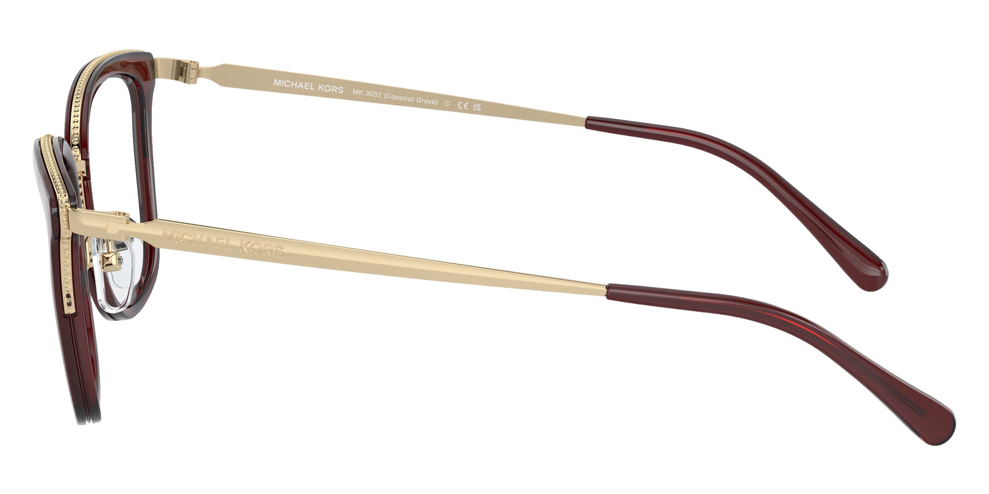 Dark Red (3949) Eyeglasses (MK3032 Coconut Grove 3949 51) by MICHAEL KORS. Size: 51-19-140, Shape: Square, Material: Metal.