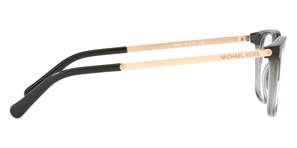 Black/Transparent Gray (3280) Eyeglasses (Bly MK4047 3280 53) by MICHAEL KORS™. Size: 53-17-135, Shape: Rectangle, Material: Plastic and Metal.