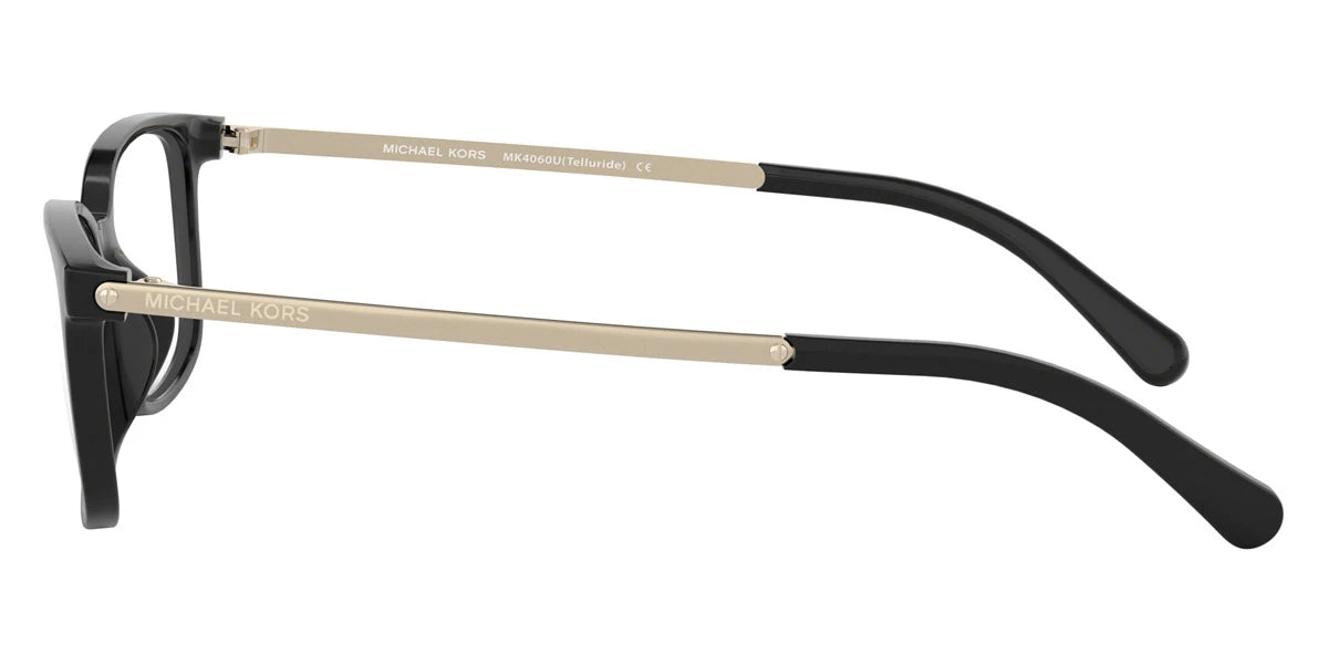 Black (3332) Eyeglasses (MK4060U 3332 54) by MICHAEL KORS™. Size: 54-15-140, Shape: Rectangle, Material: Plastic.