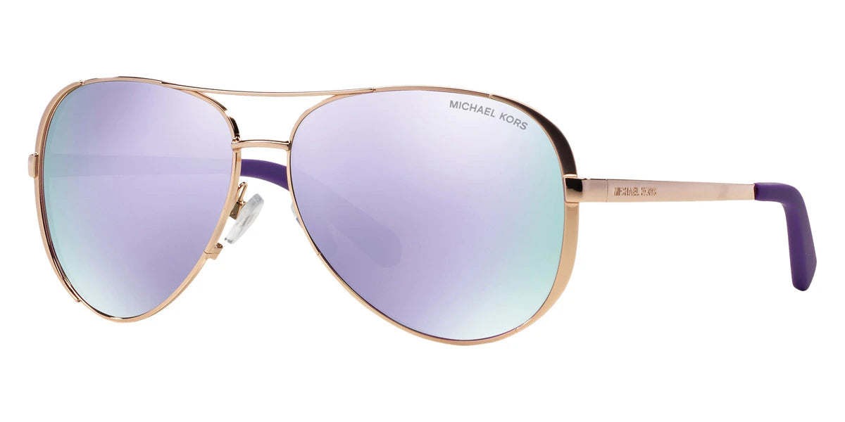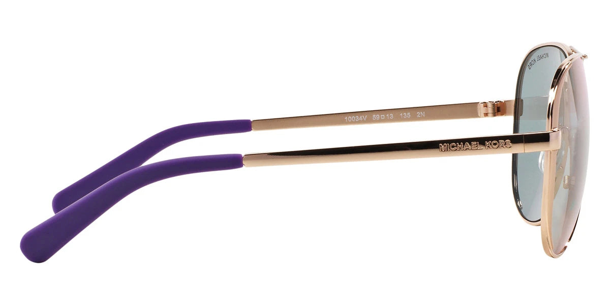 Rose Gold (10034V) Sunglasses with Purple Mirrored lenses (MK5004 10034V 59) by MICHAEL KORS™. Size: 59-13-135, Shape: Aviator, Material: Metal.