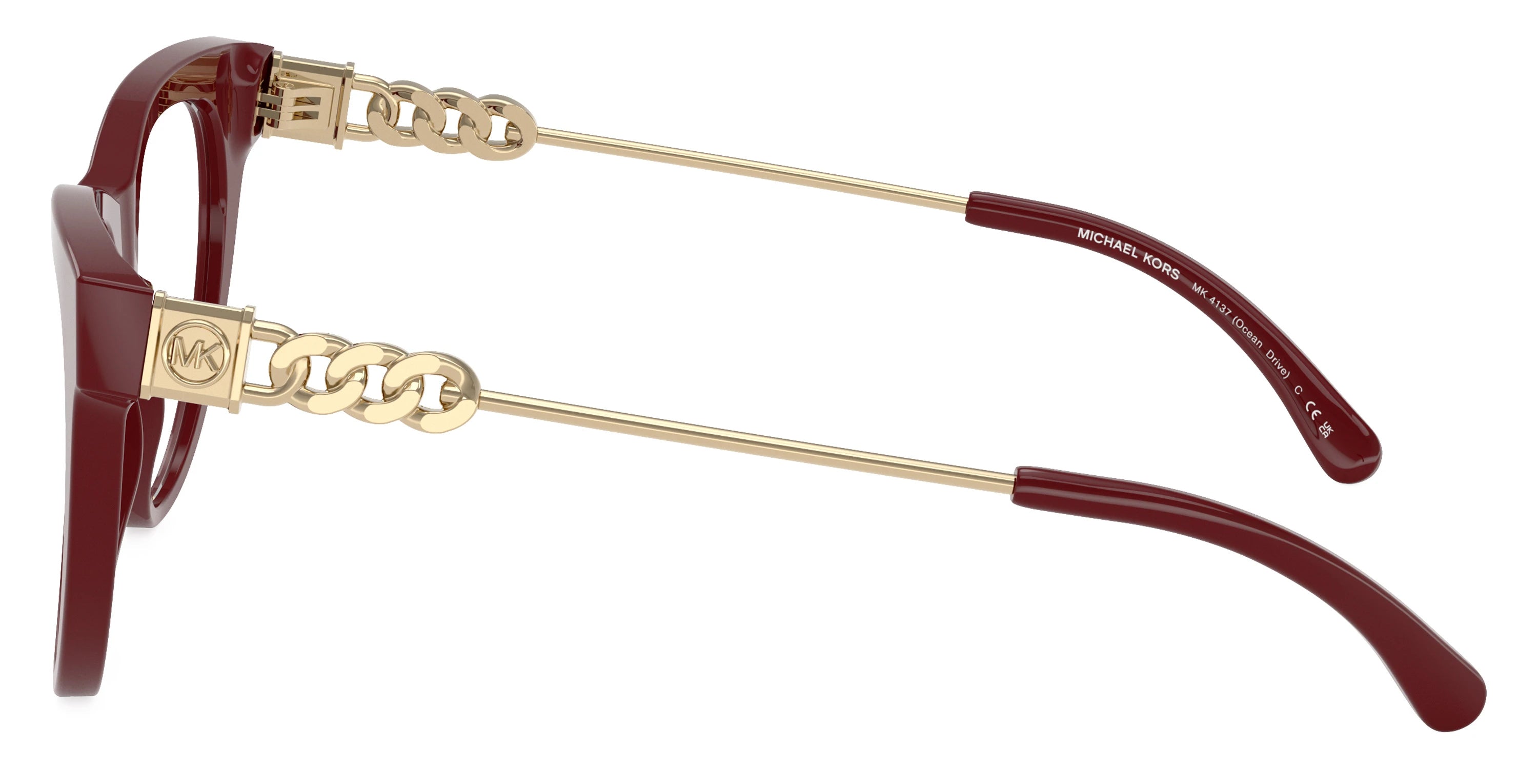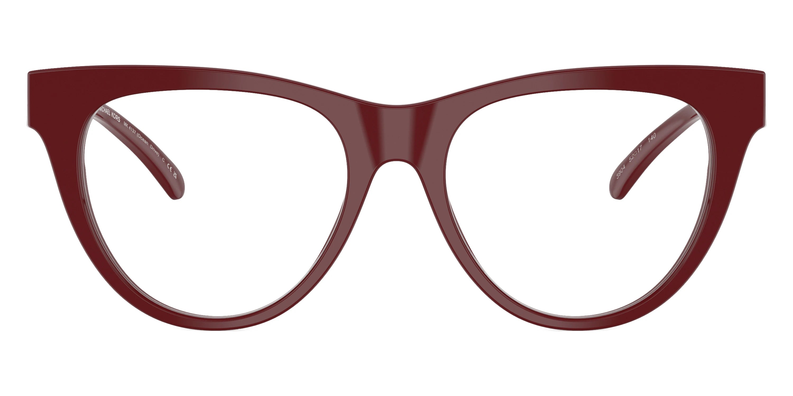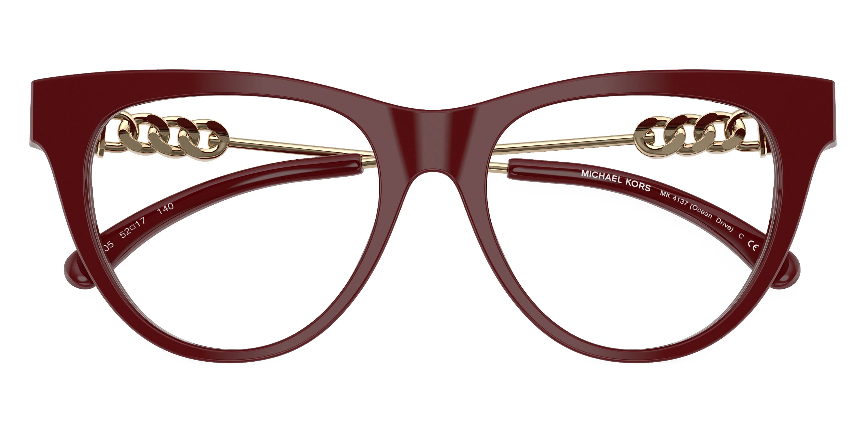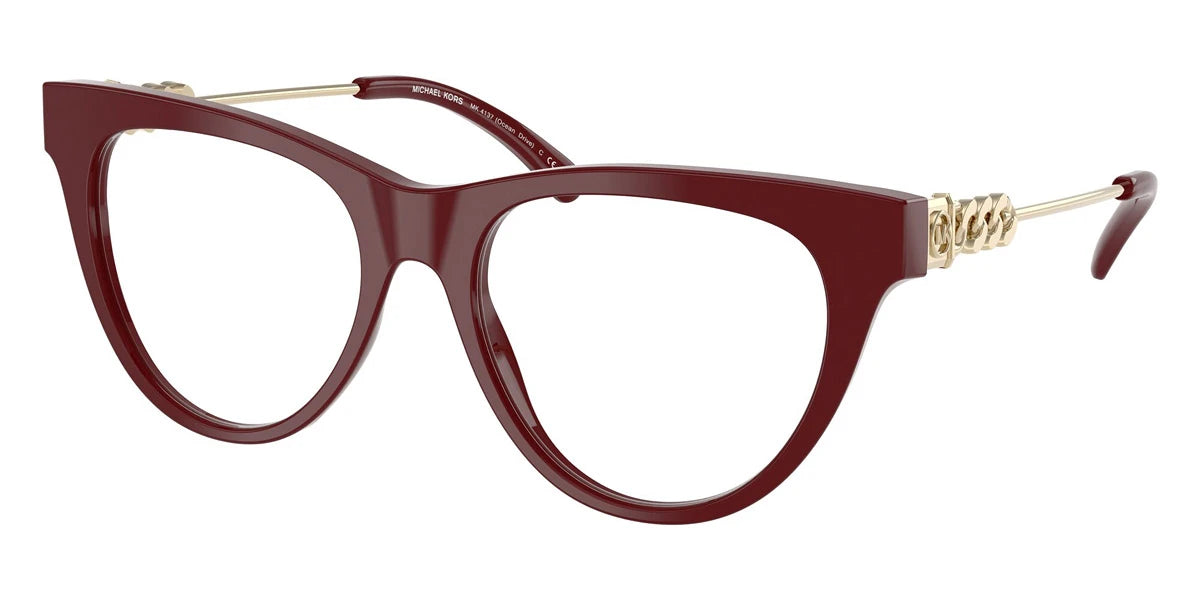 Deep Red/Light Gold (4004) Eyeglasses (Ocean Drive MK4137 4004 52) by MICHAEL KORS™. Size: 52-17-140, Shape: Cat-Eye, Material: Acetate and Metal.