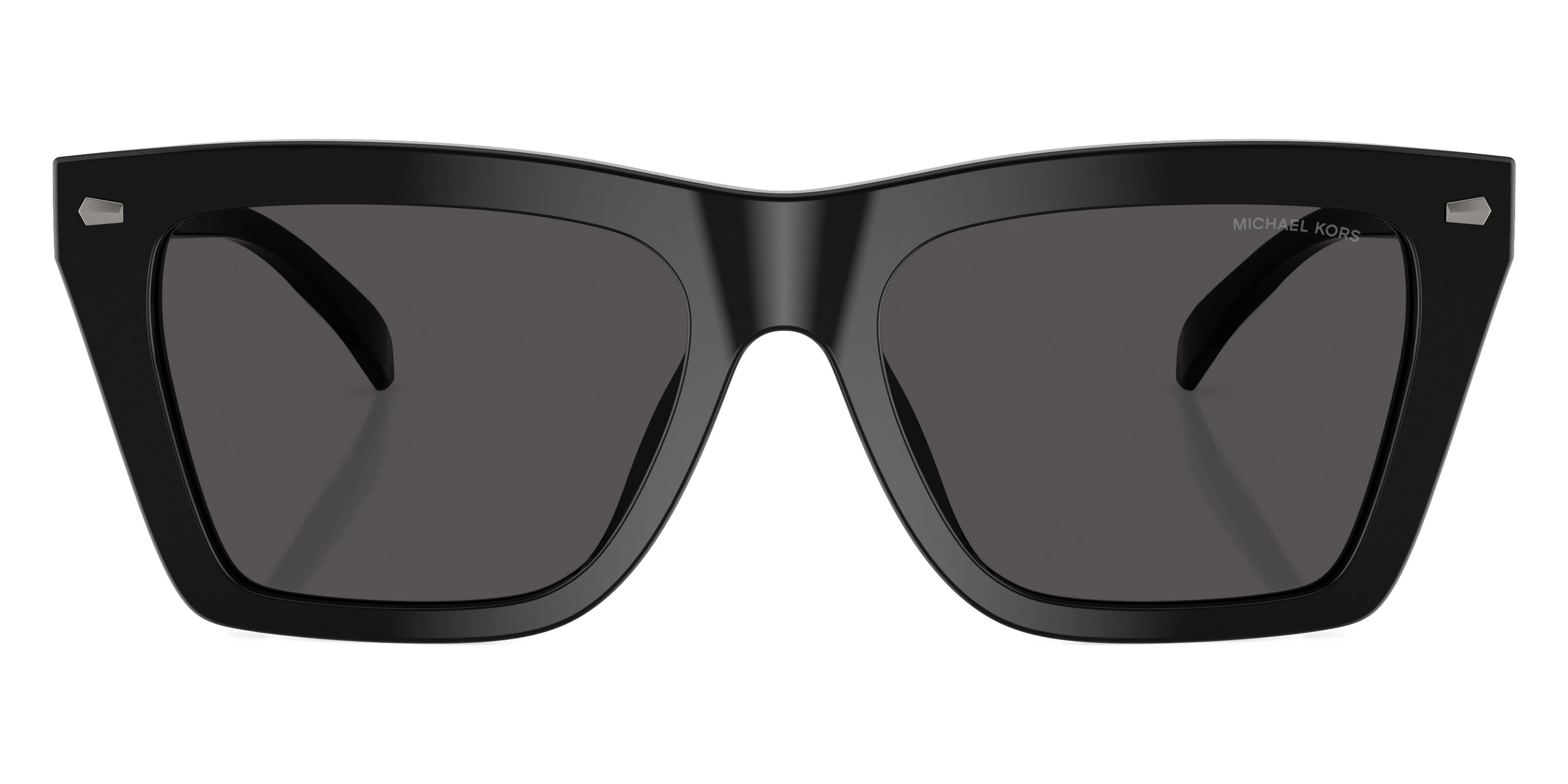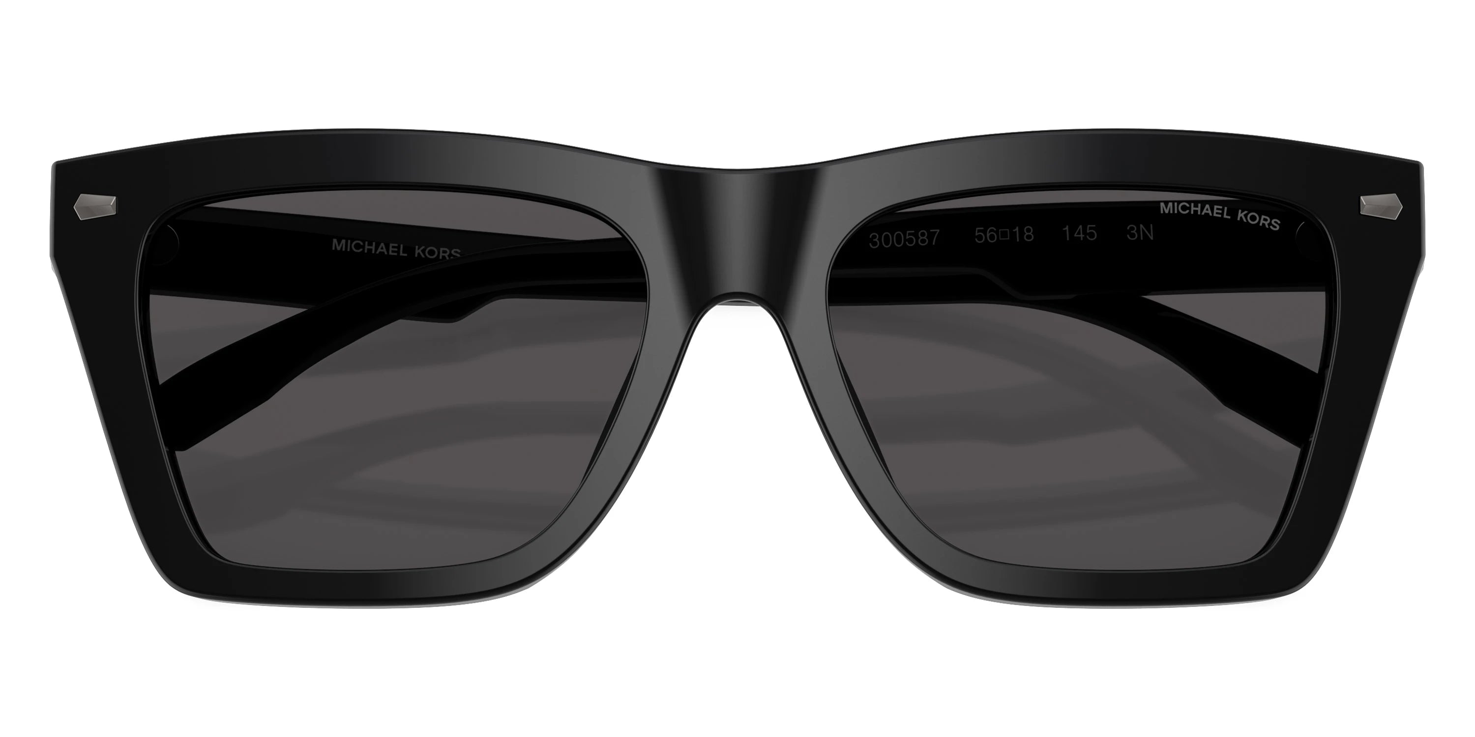 Black (300587) Sunglasses with Dark Gray Solid lenses (Pebble Beach MK2225U 300587 56) by MICHAEL KORS™. Size: 56-18-145, Shape: Square, Material: Acetate.