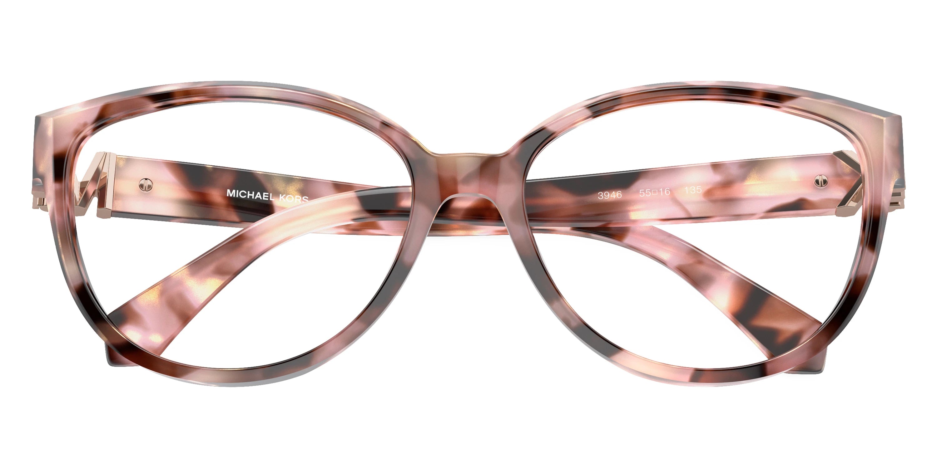 Pink Pearlized Tortoise (3946) Eyeglasses (Punta Mita MK4114 3946 55) by MICHAEL KORS™. Size: 55-16-135, Shape: Cat-Eye, Material: Acetate and Metal.