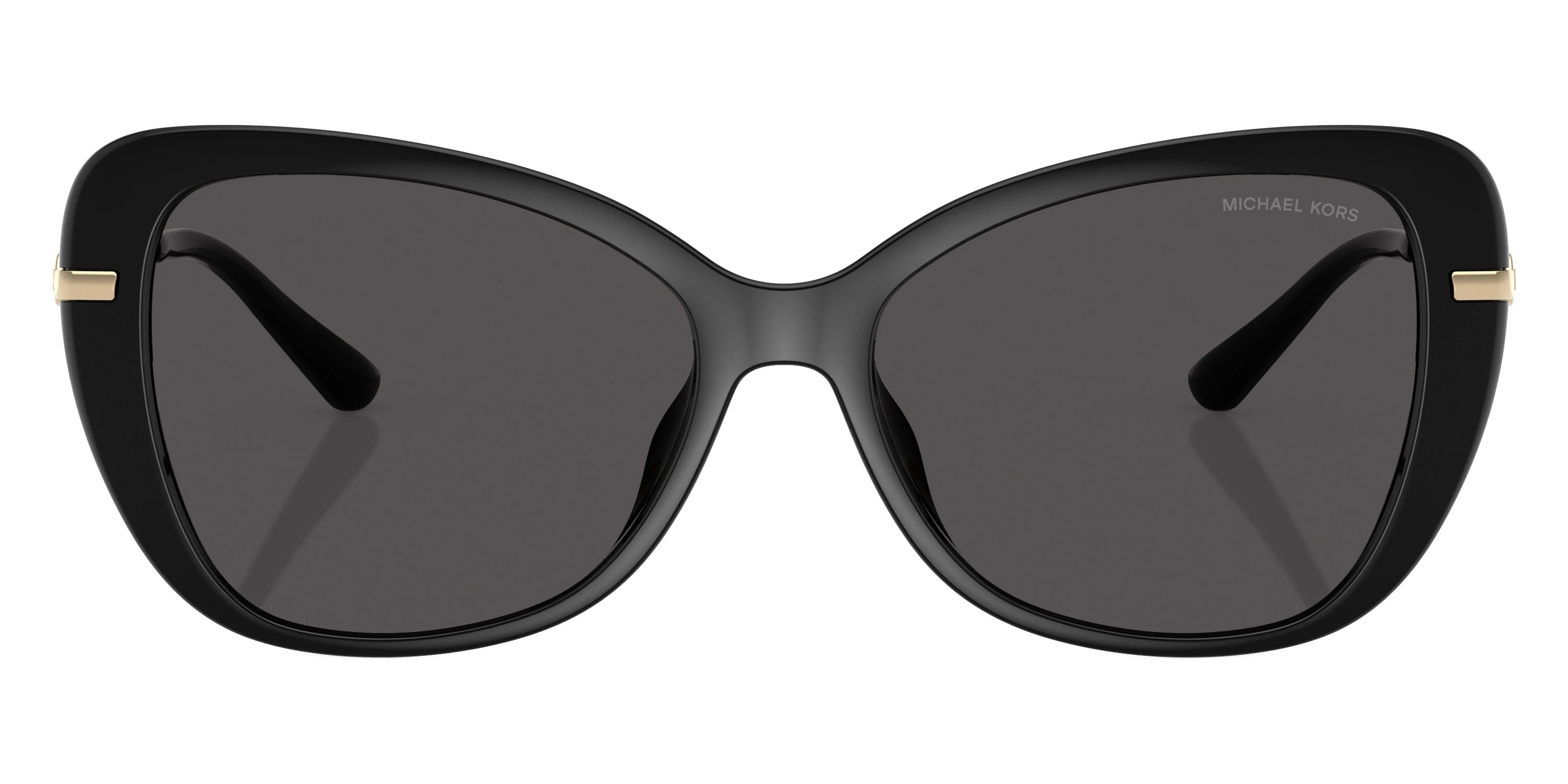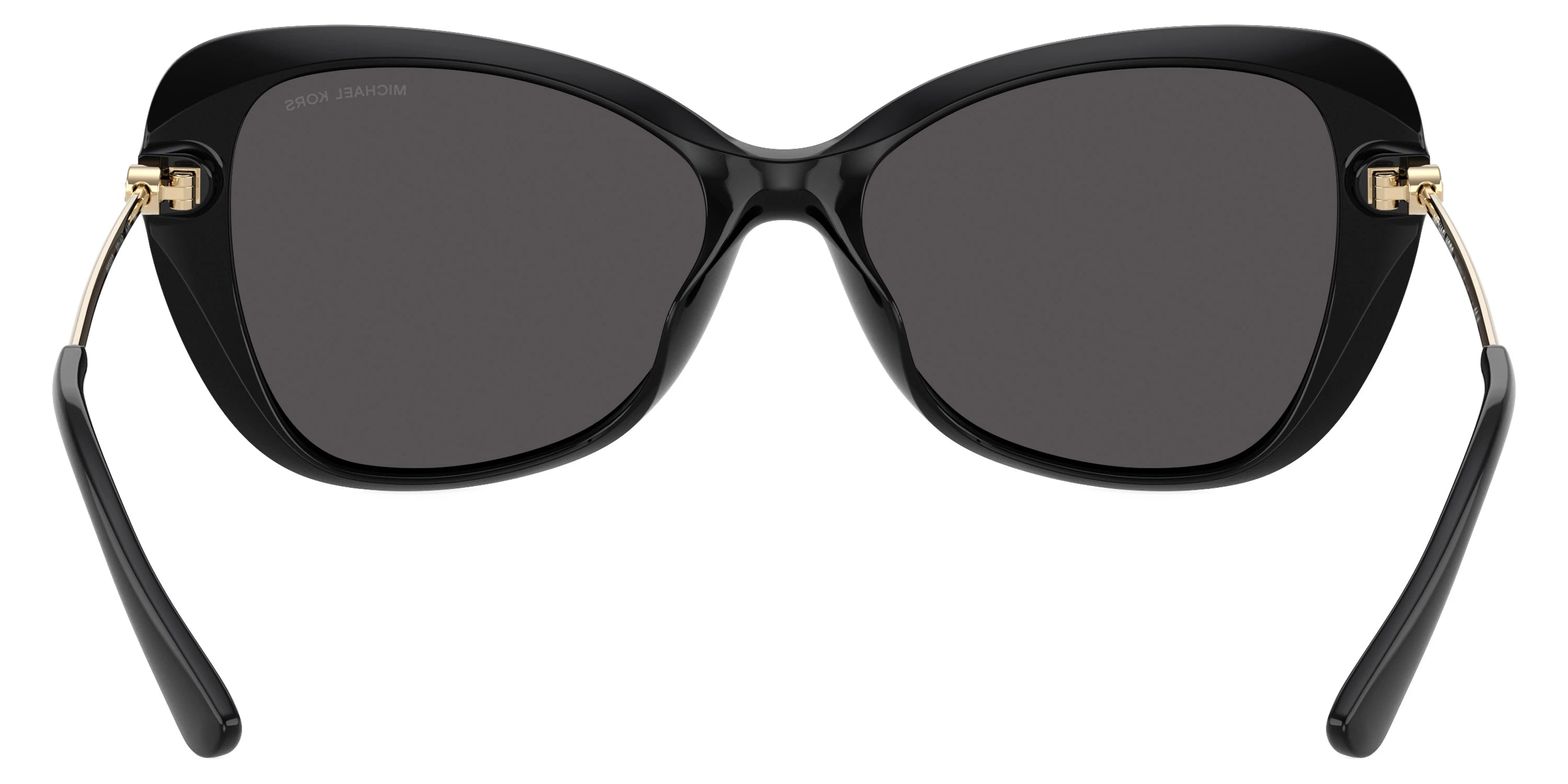 Black/Light Gold (300587) Sunglasses with Dark Gray Solid lenses (Saint Croix MK2230U 300587 56) by MICHAEL KORS™. Size: 56-16-140, Shape: Butterfly, Material: Injected and Metal.