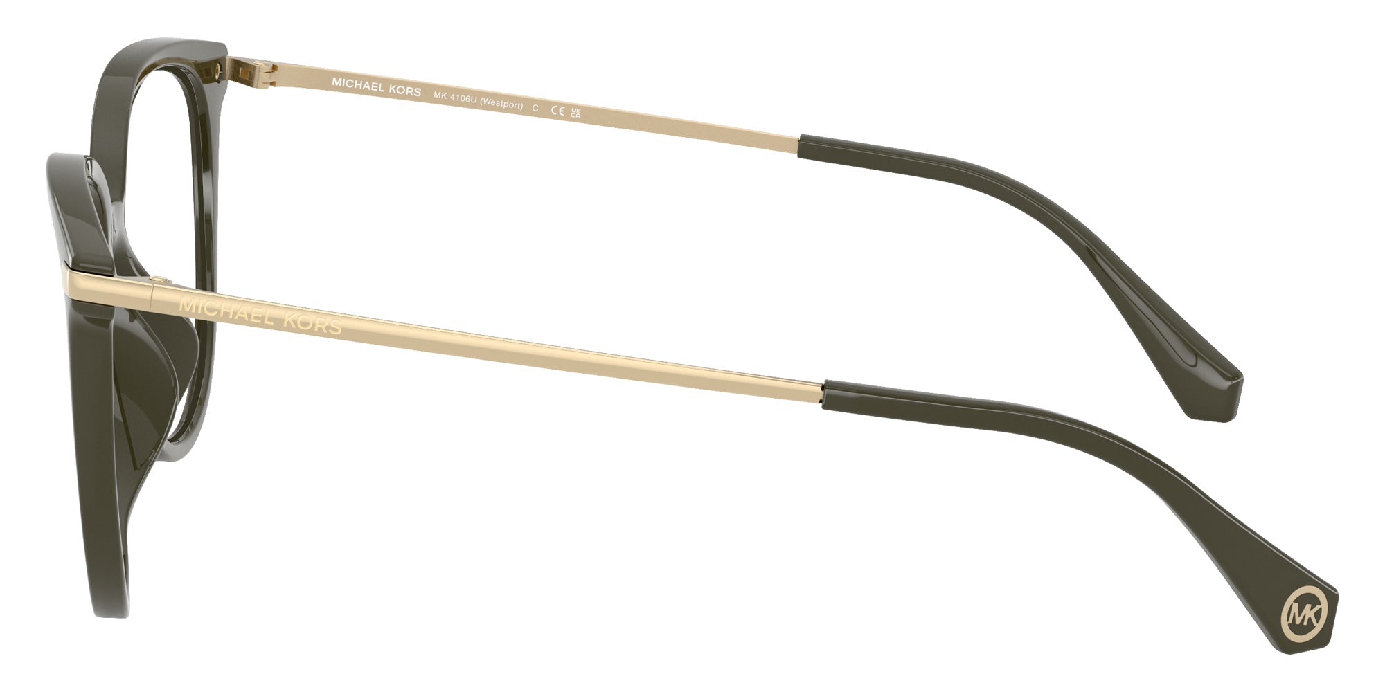 Olive (3902) Eyeglasses (MK4106U Westport 3902 54) by MICHAEL KORS. Size: 54-17-140, Shape: Round, Material: Injected and Metal.
