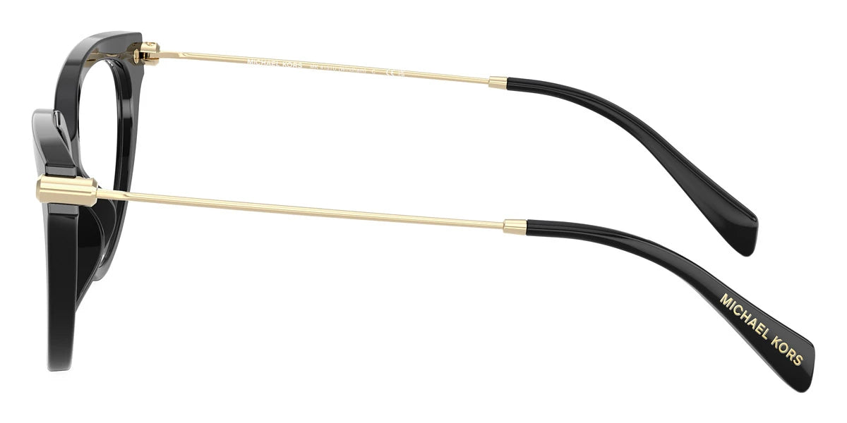 Black/Light Gold Shiny (3005) Eyeglasses (Windham MK4151U 3005 53) by MICHAEL KORS™. Size: 53-16-140, Shape: Cat-Eye, Material: Acetate and Metal.