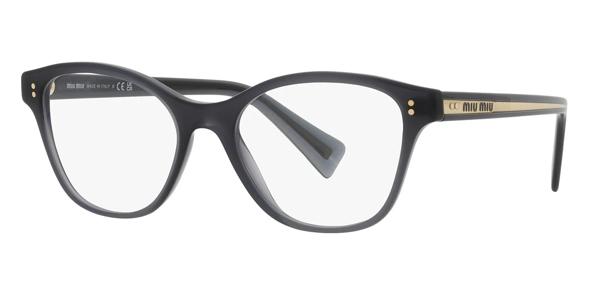 Gray (06U1O1) Eyeglasses (MU 02UV 06U1O1 52) by Miu Miu. Size: 52-18-145, Shape: Square, Material: Plastic.