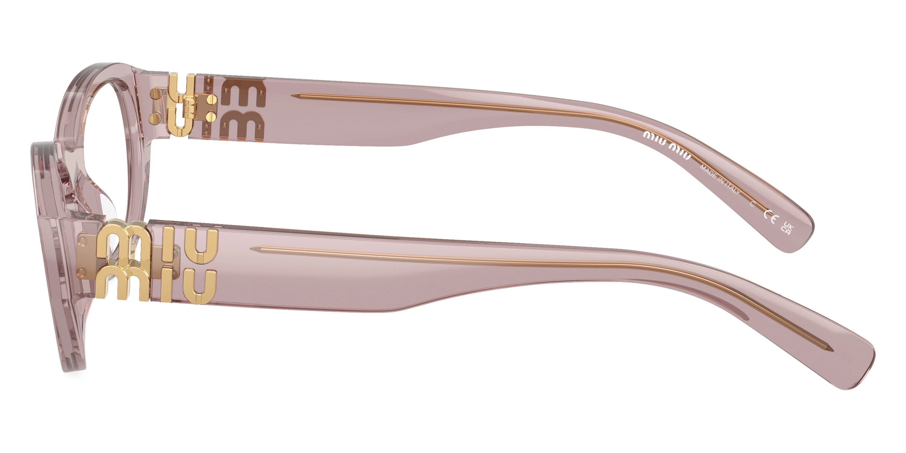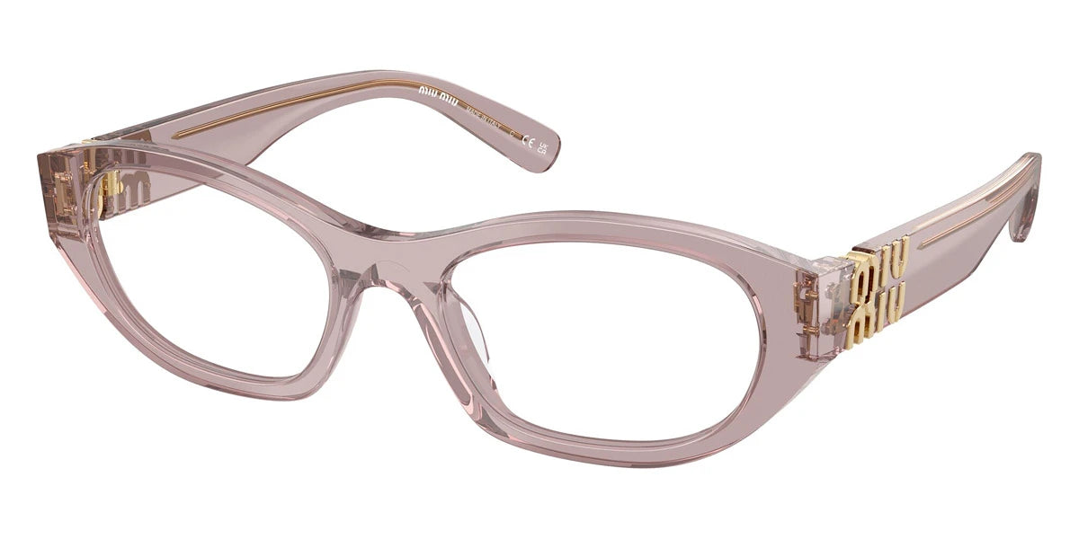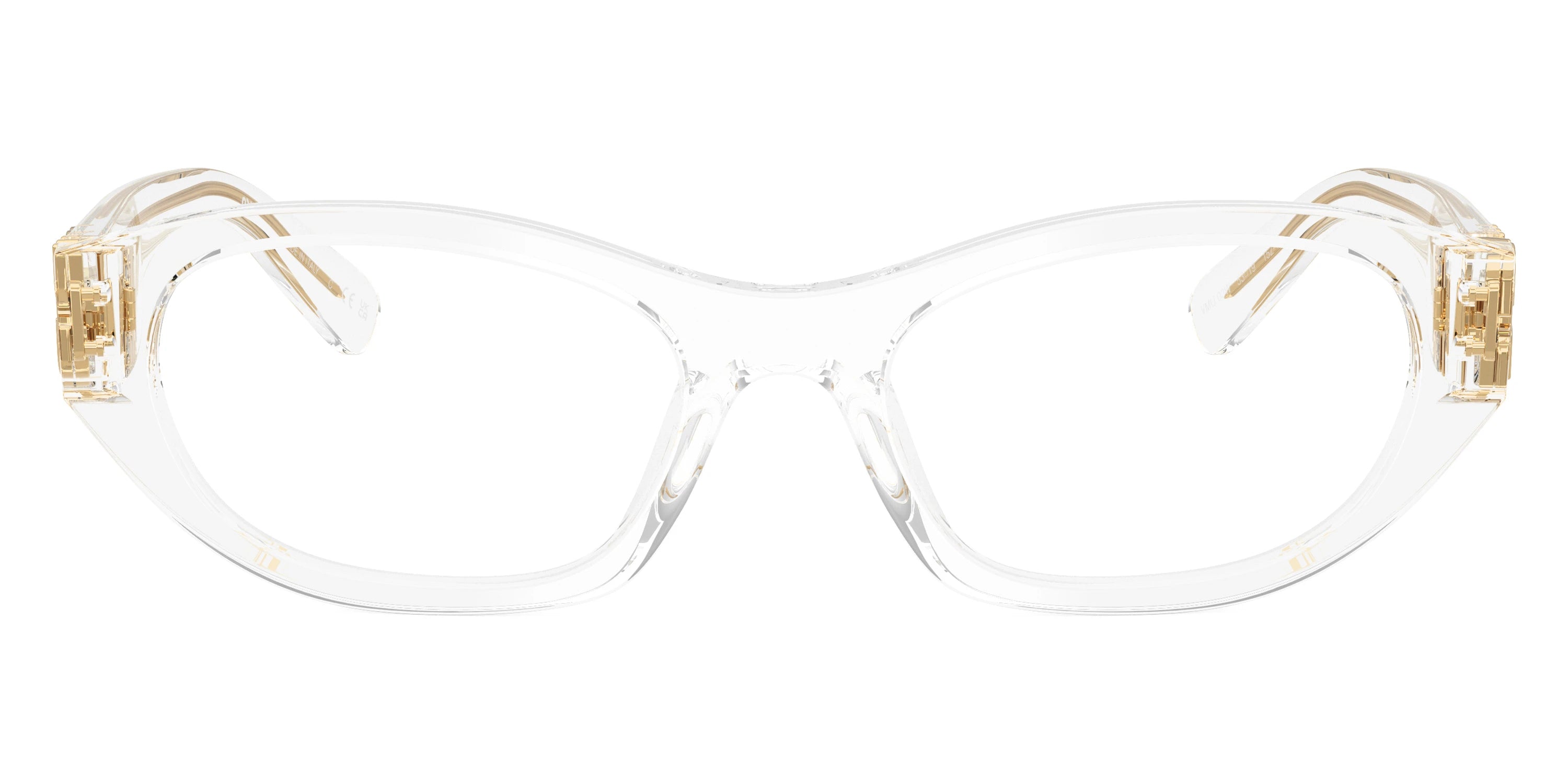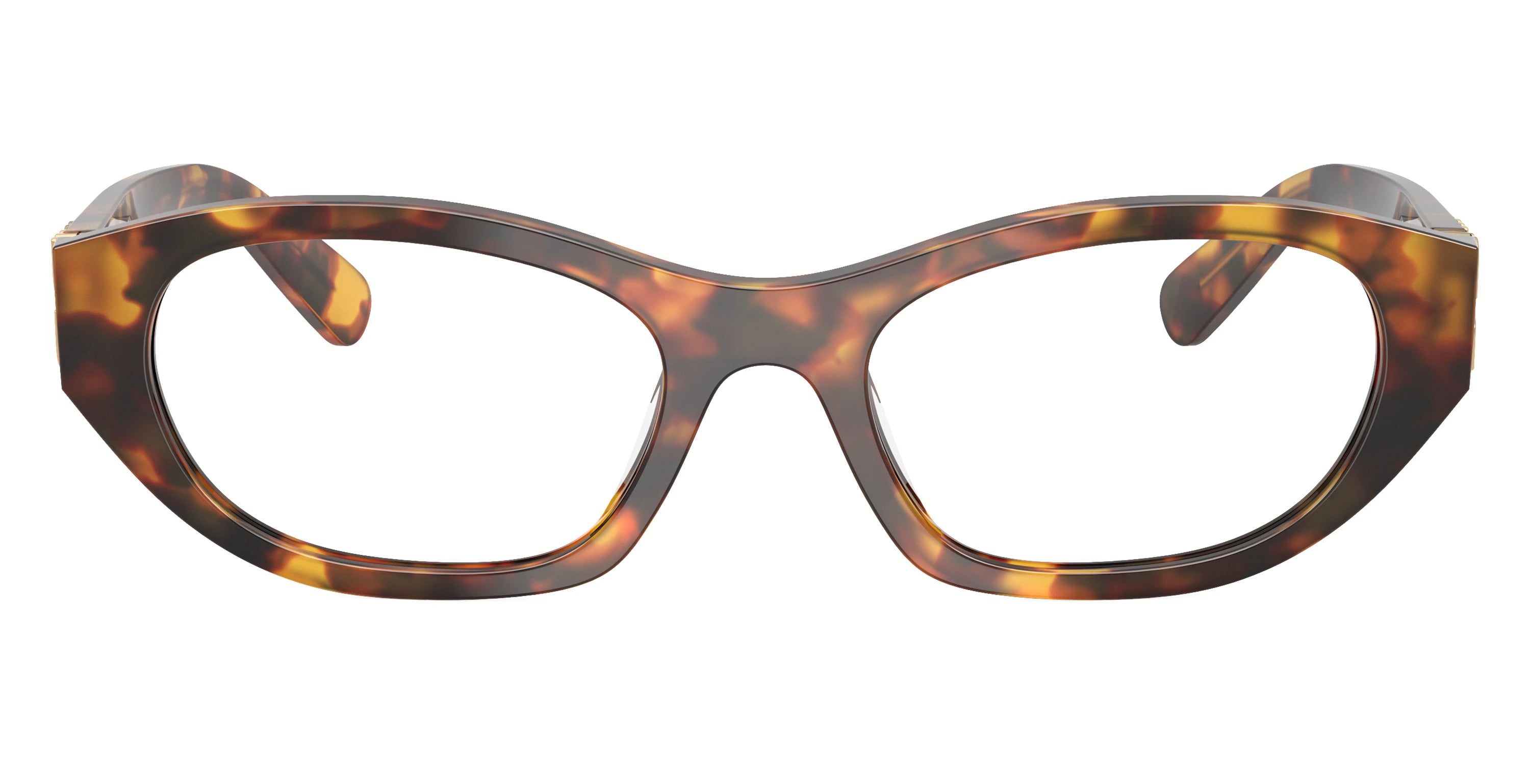 Havana Honey (14L1O1) Eyeglasses (MU 03WV 14L1O1 51) by Miu Miu. Size: 51-19-140, Shape: Irregular, Material: Acetate and Metal.