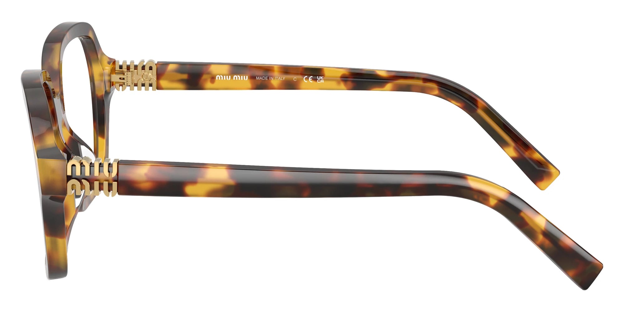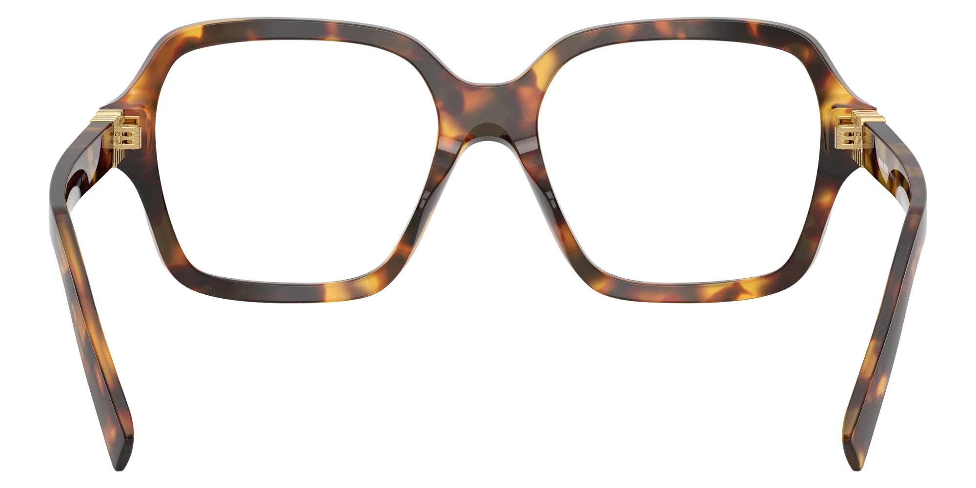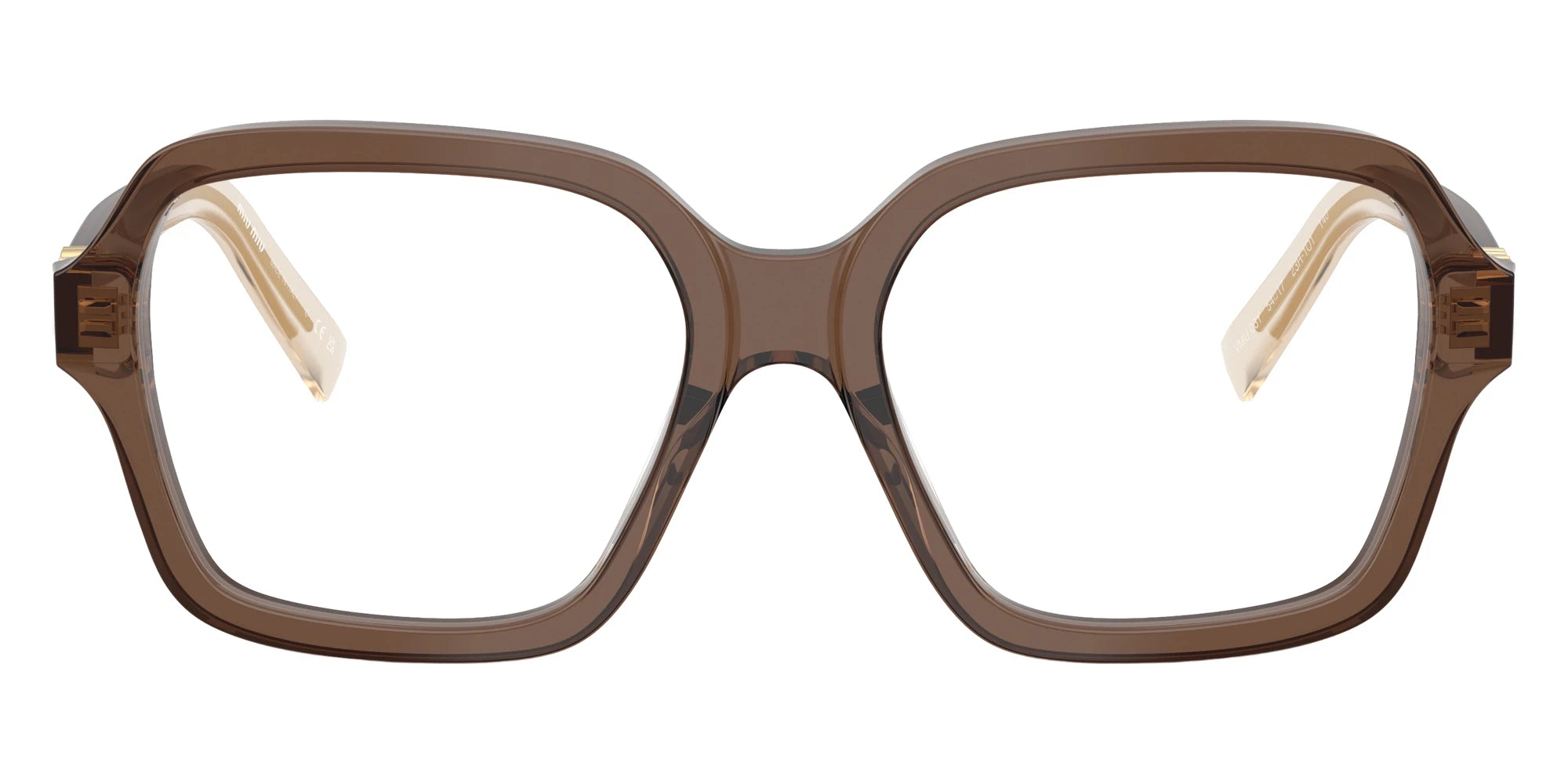 Havana Honey (14L1O1) Eyeglasses (MU 03YV 14L1O1 52) by Miu Miu. Size: 52-17-140, Shape: Square, Material: Acetate and Metal.