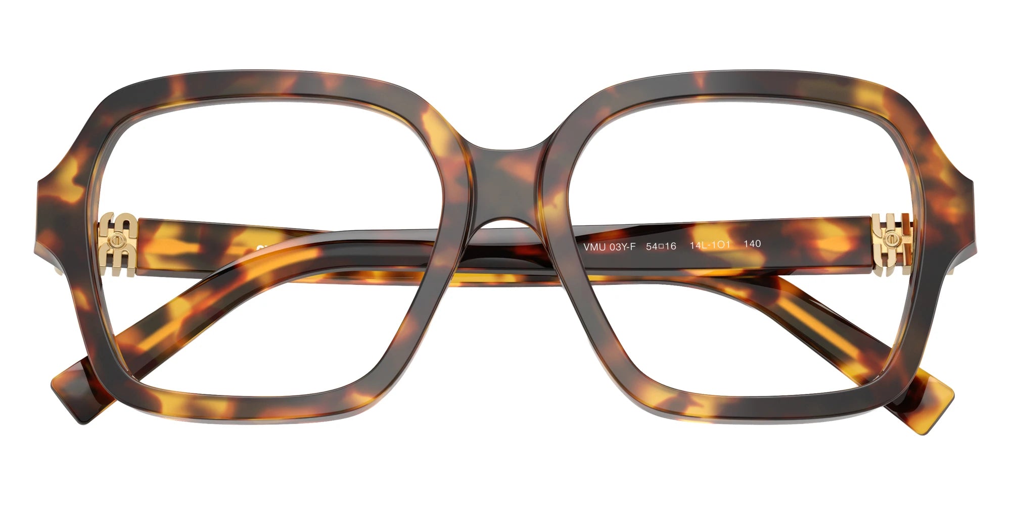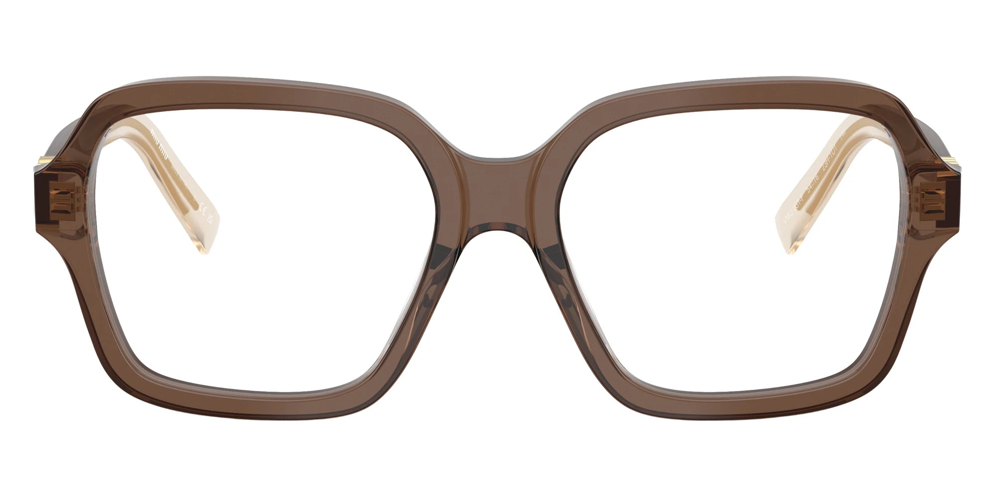 Havana Honey (14L1O1) Eyeglasses (MU 03YVF 14L1O1 54) by Miu Miu. Size: 54-16-140, Shape: Square, Material: Acetate and Metal.