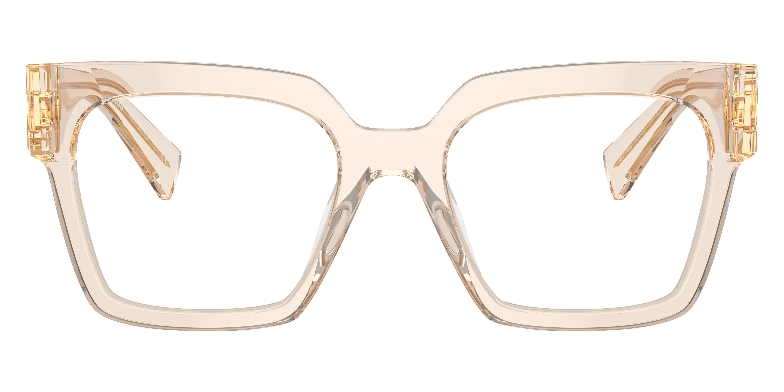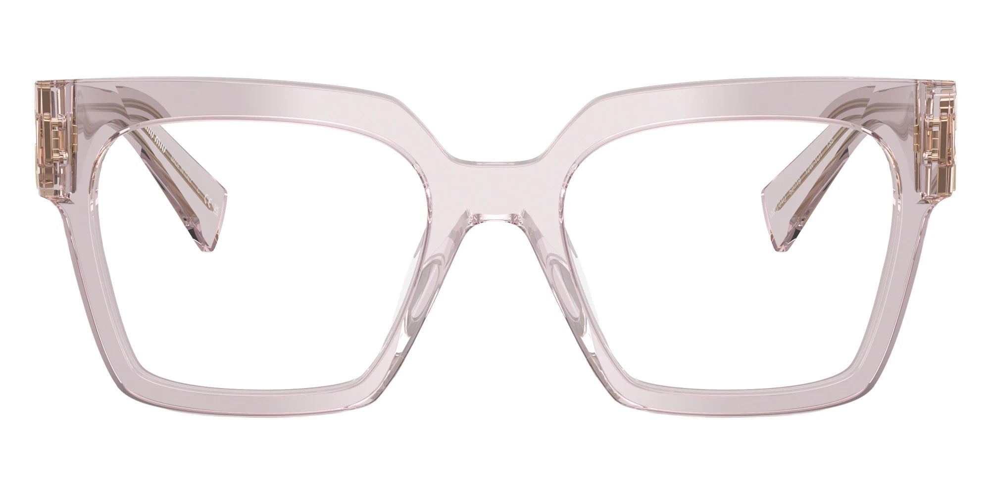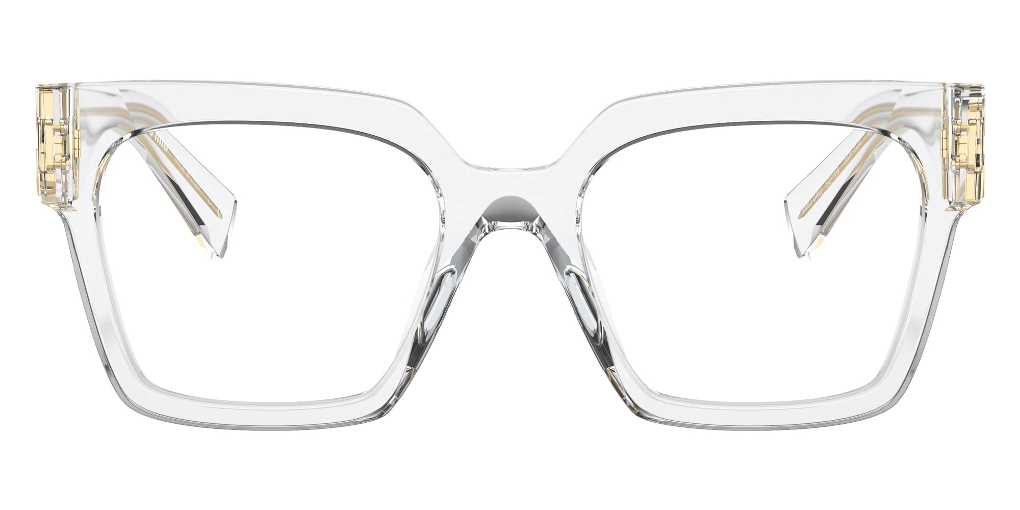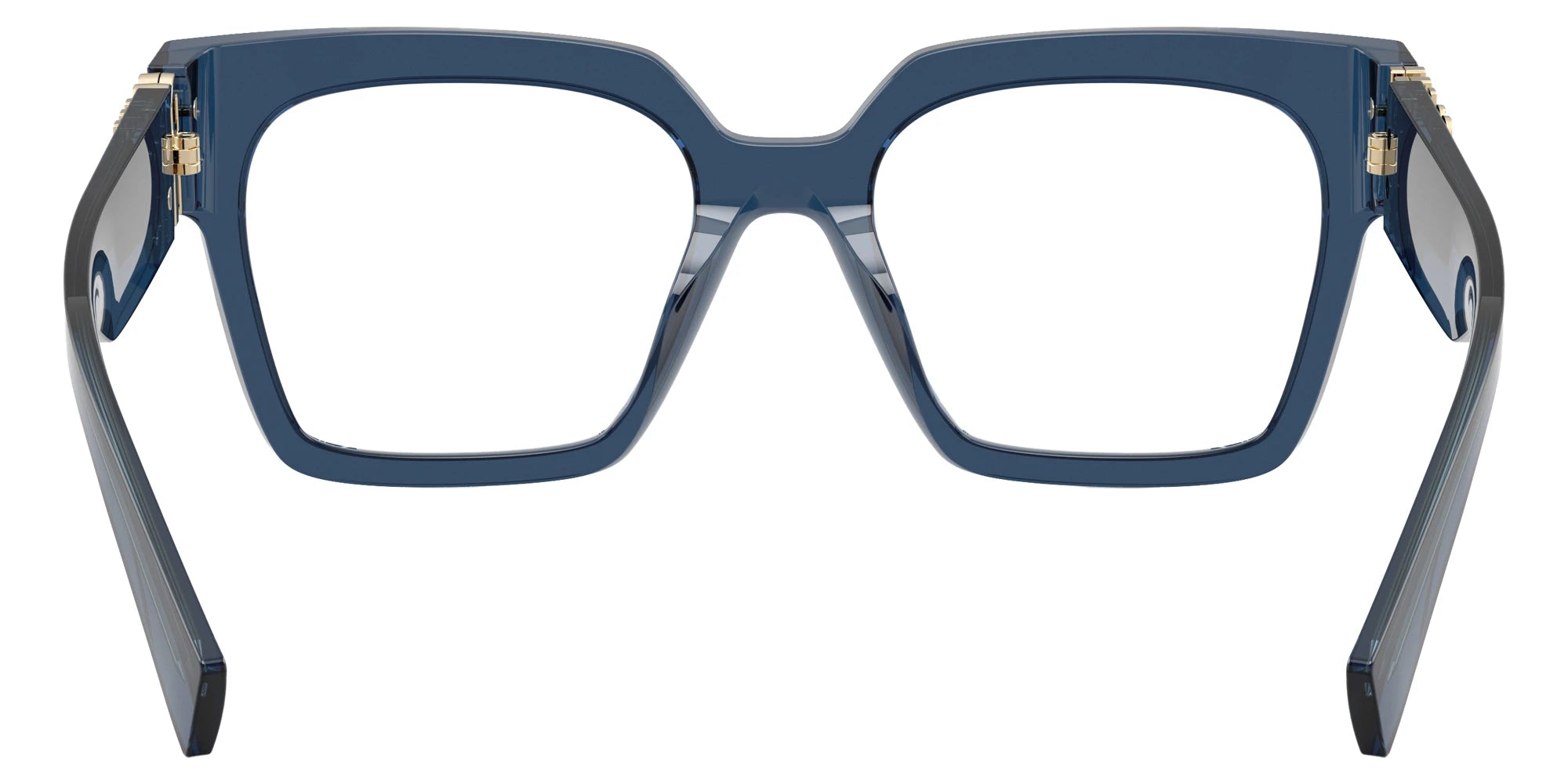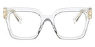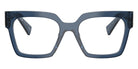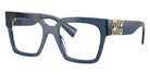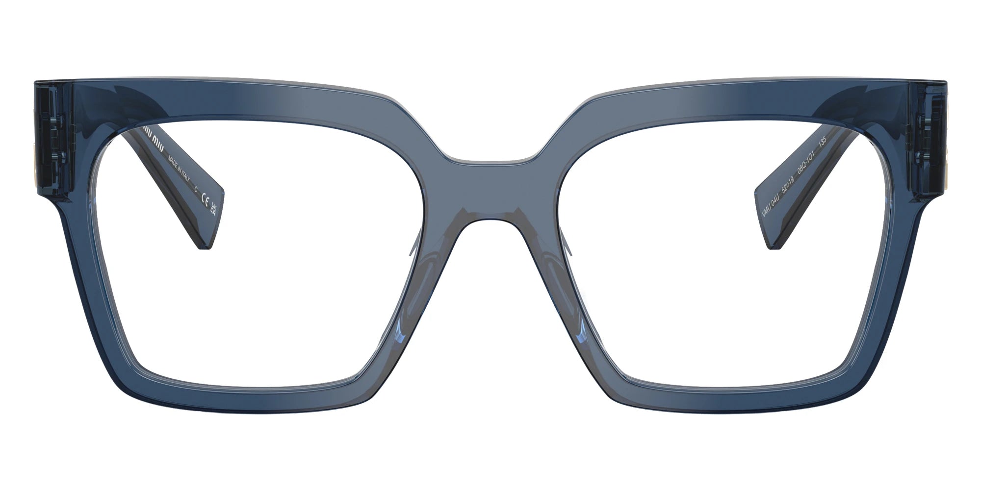 Blue Transparent (08Q1O1) Eyeglasses (MU 04UV 08Q1O1 50) by Miu Miu. Size: 50-19-135, Shape: Square, Material: Acetate and Metal.
