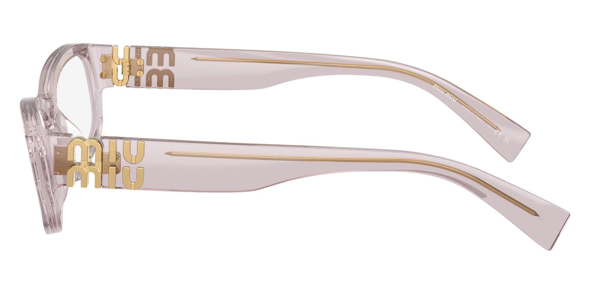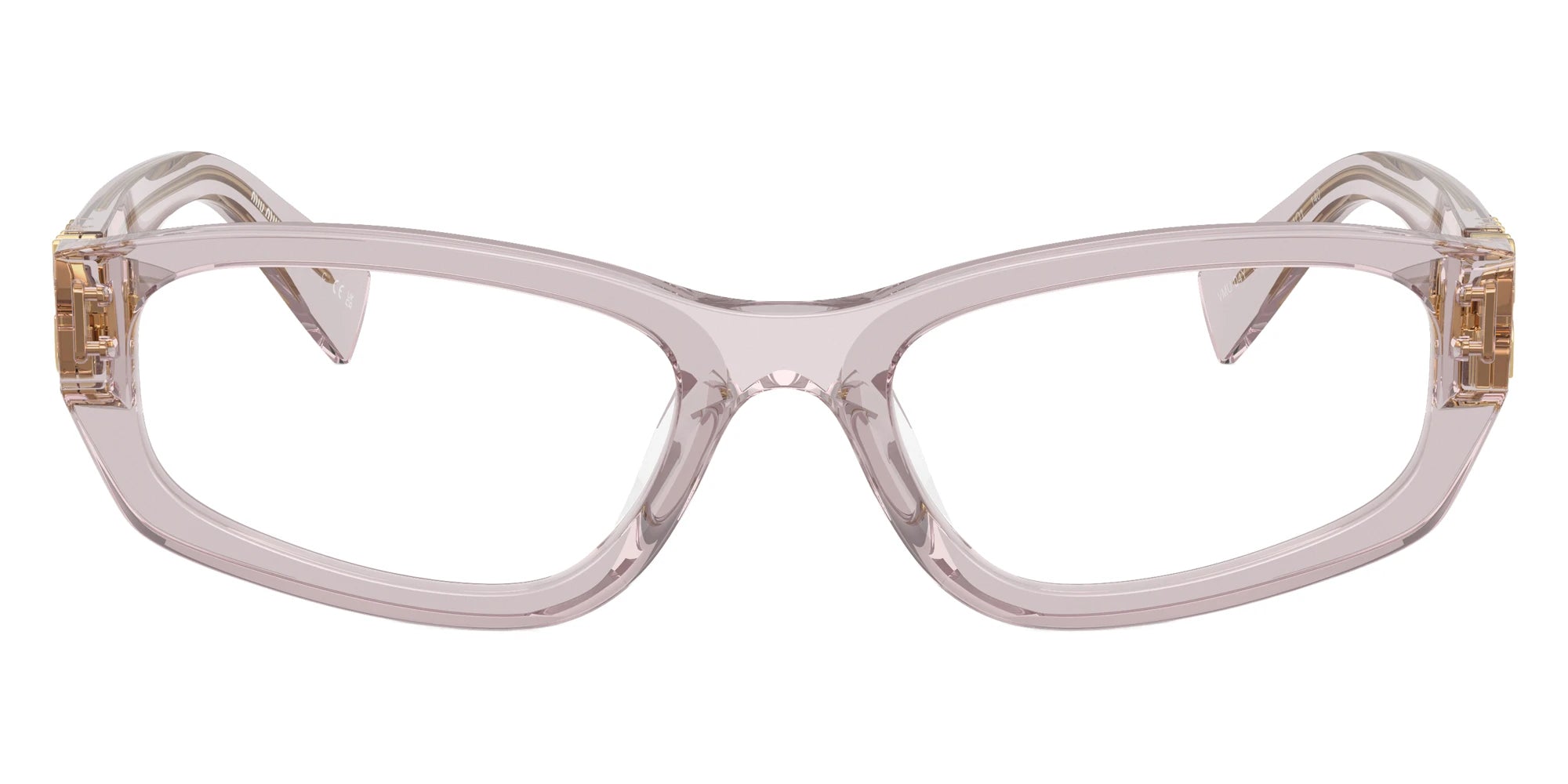 Mauve Transparent (12W1O1) Eyeglasses (MU 04YV 12W1O1 52) by Miu Miu. Size: 52-19-140, Shape: Irregular, Material: Acetate.