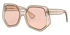 Transparent Beige (06D3D2) Sunglasses with Light Brown lenses (MU 07VSA 06D3D2 55) by Miu Miu. Size: 55-18-145, Shape: Irregular, Material: Plastic.