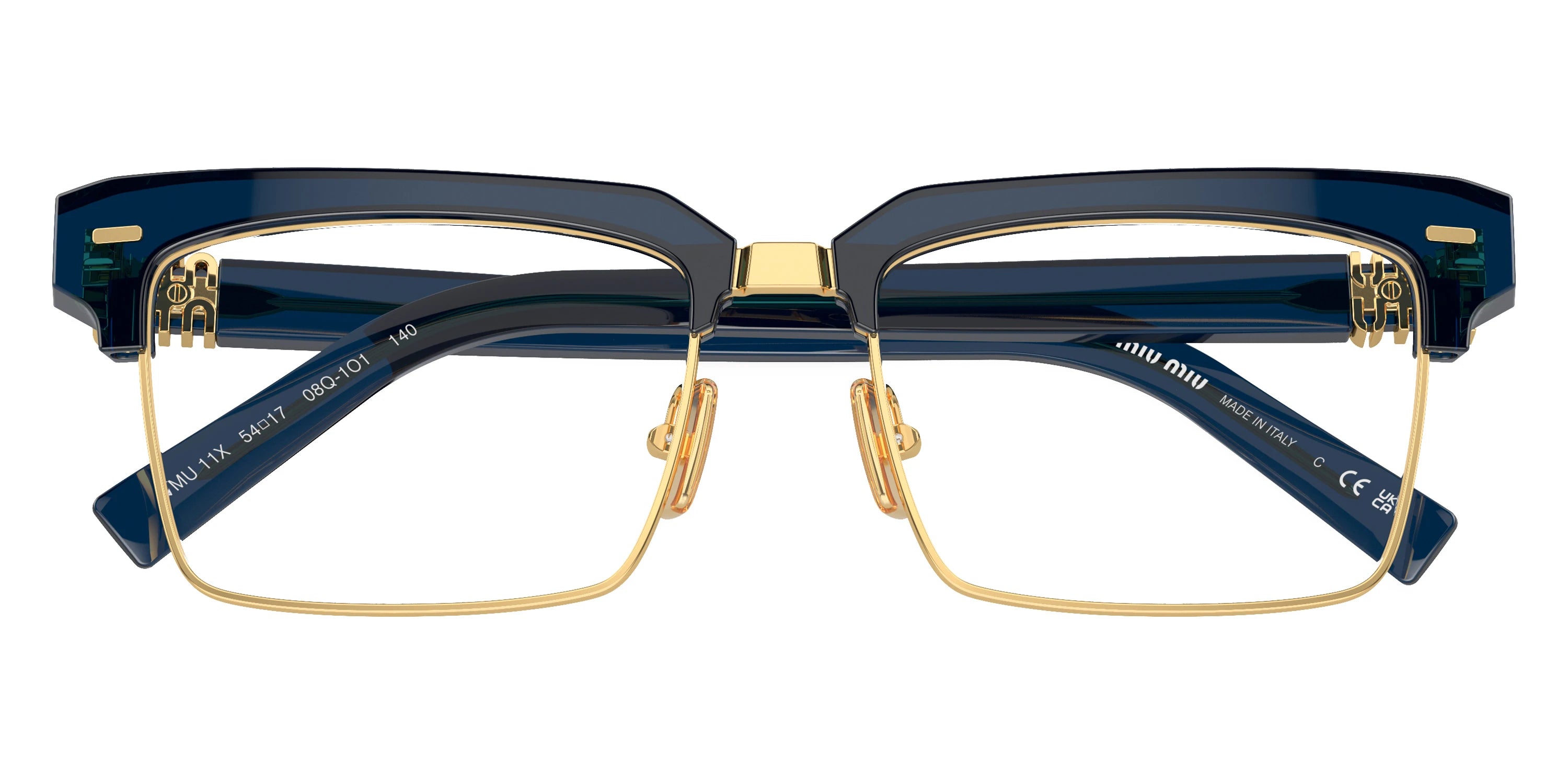 MU 11XV Eyeglasses by Miu Miu. The rectangle shape design feature a full rim acetate and metal frame. This model is available in four different color combinations and sizes. Miuccia Prada created her Miu Miu clothing and accessory line with free young women in mind - those who are not afraid to experiment and prefer to stand out with their extravagance and originality. The eyeglasses of the brand are distinguished by avant-garde and bright style. Some models from Miu Miu eyewear collections are decorated with stones and sparkles. The assortment is rich in various silhouettes of non-standard shapes and sizes including oversized Cat-eyes or heart-shaped glasses. Frames are made of high quality acetate in an array of trendy shades.