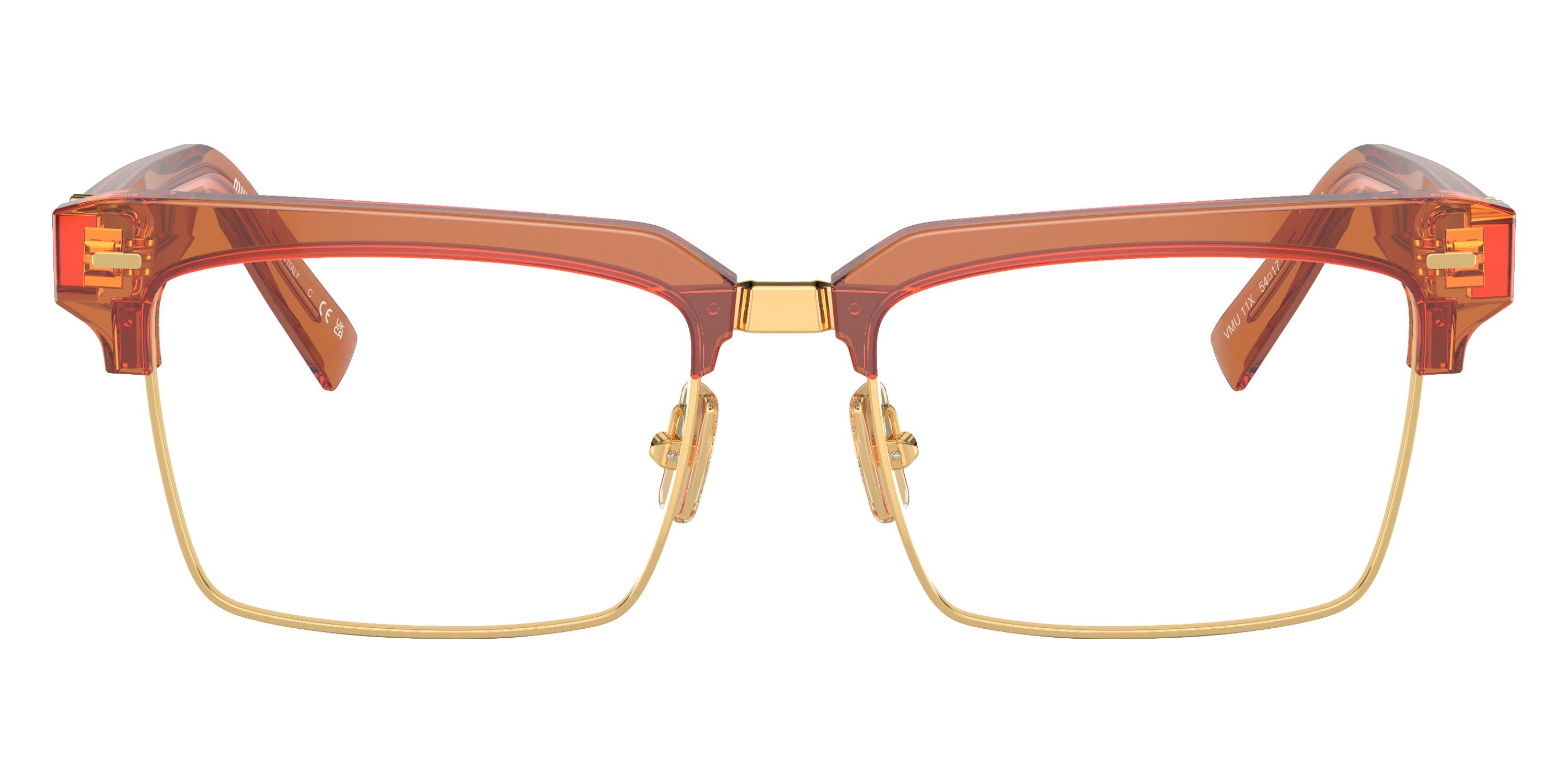 Caramel Transparent (15T1O1) Eyeglasses (MU 11XV 15T1O1 54) by Miu Miu. Size: 54-17-140, Shape: Rectangle, Material: Acetate and Metal.
