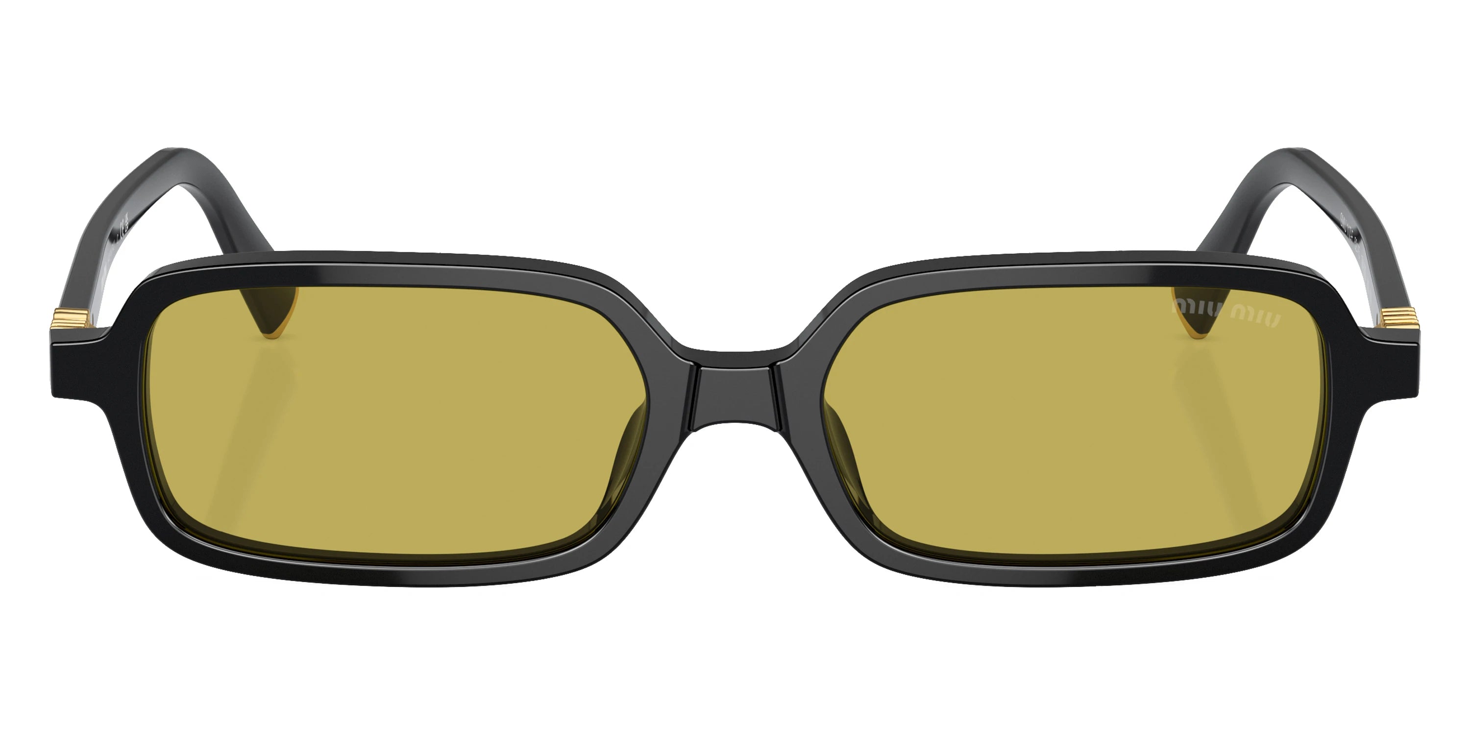 Black (16K07O) Sunglasses with Olive Green lenses (Regard MU 11ZSF 16K07O 52) by Miu Miu. Size: 52-15-140, Shape: Rectangle, Material: Acetate and Metal.