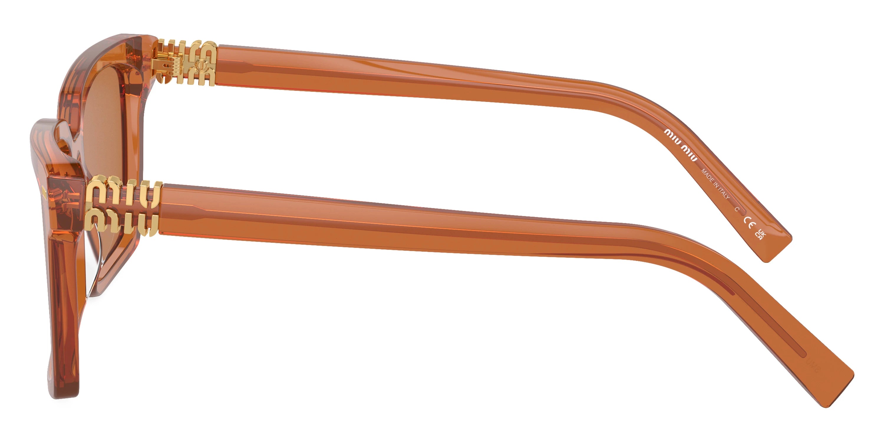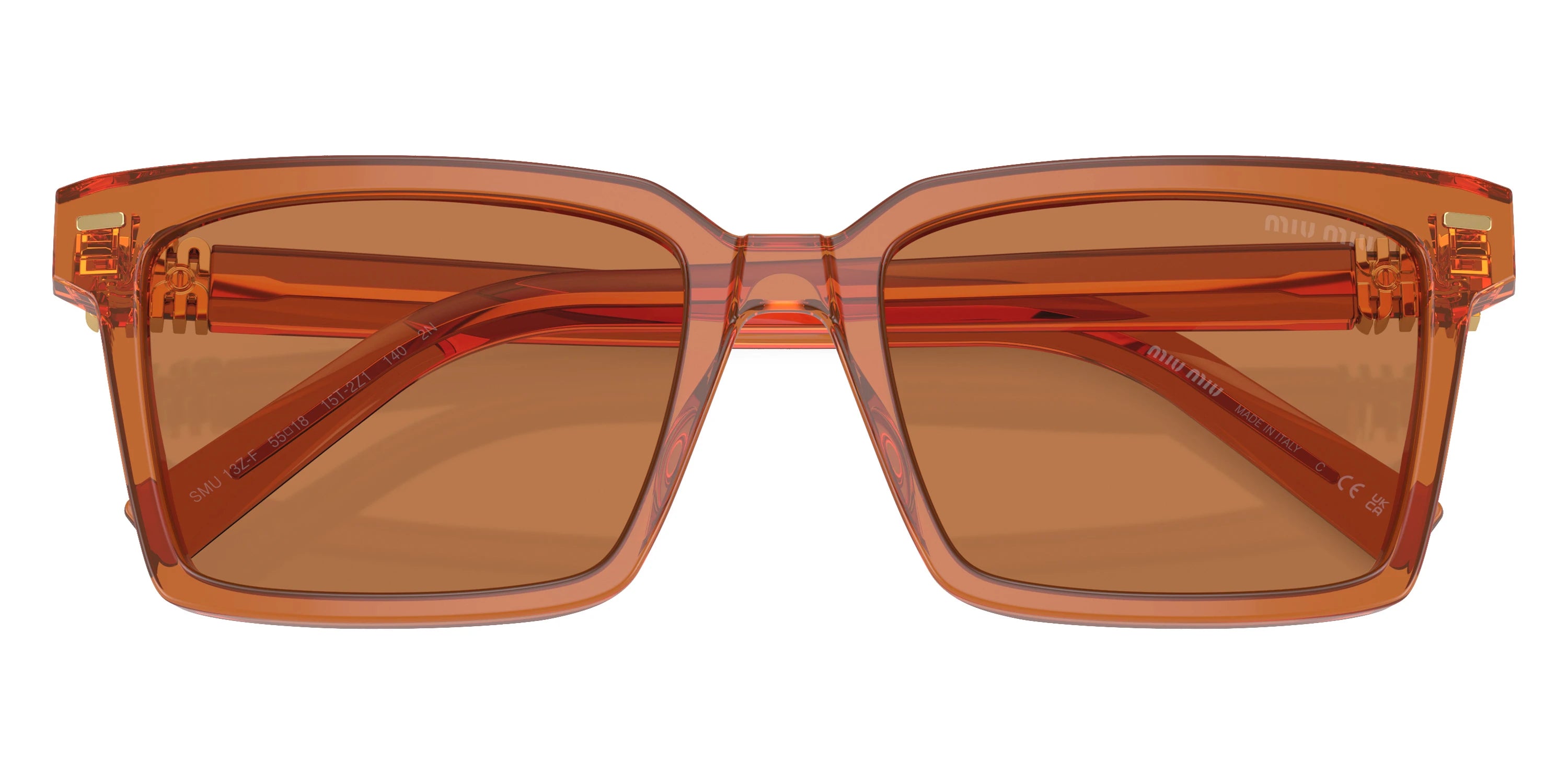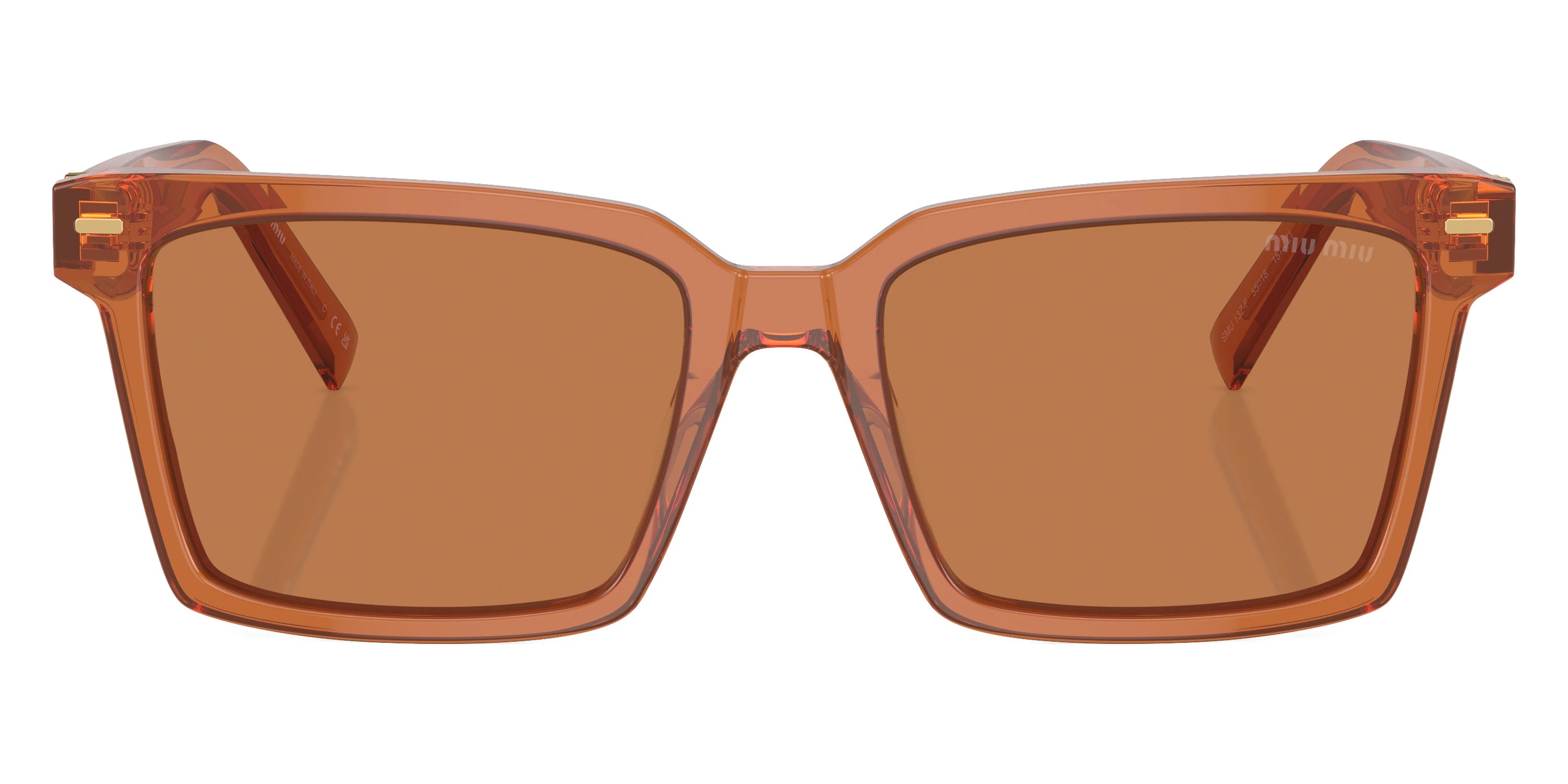 Caramel Transparent (15T2Z1) Sunglasses with Brown lenses (MU 13ZSF 15T2Z1 55) by Miu Miu. Size: 55-18-140, Shape: Rectangle, Material: Acetate and Metal.