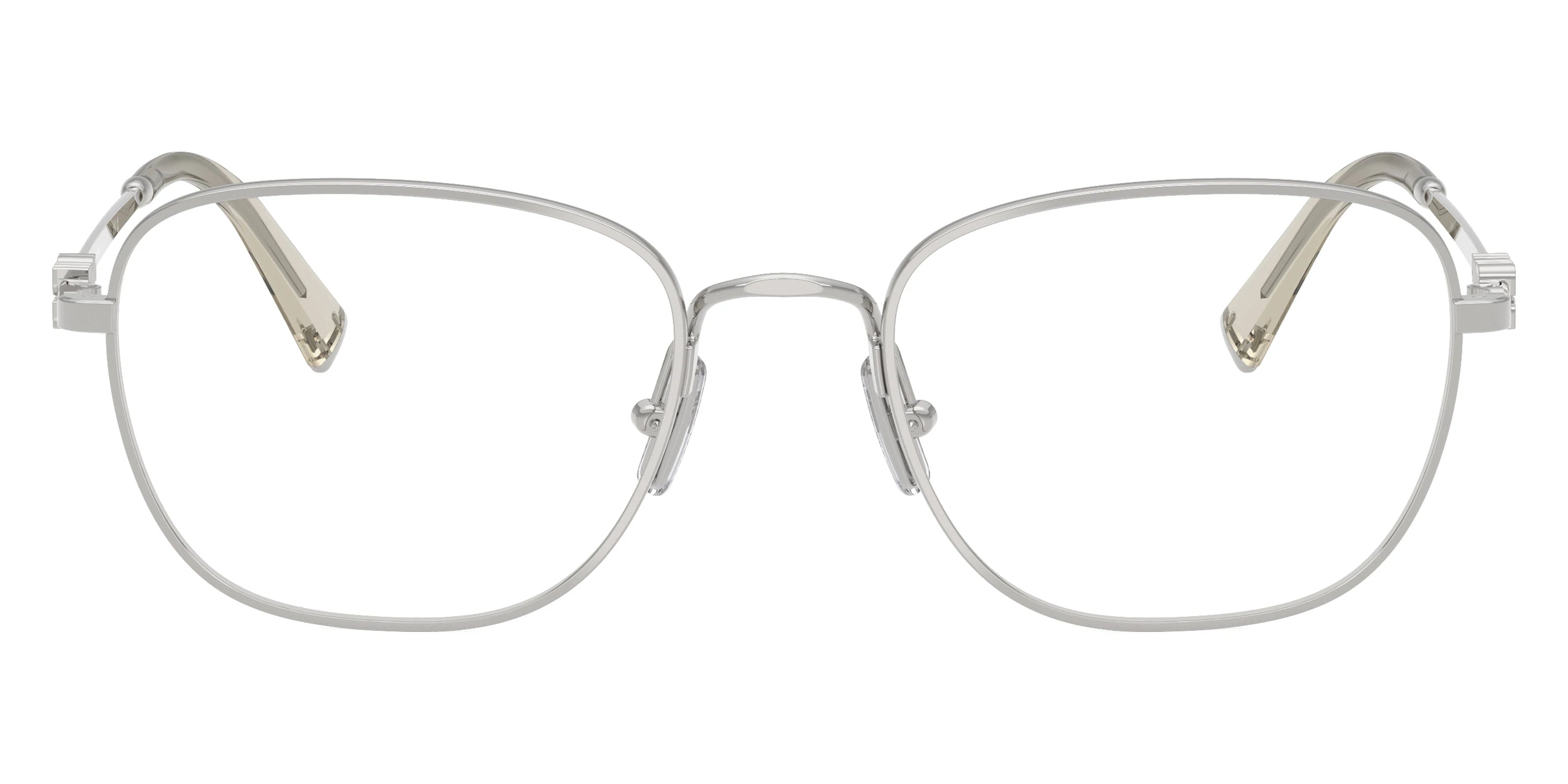 MU 50WV Eyeglasses by Miu Miu. The square shape design feature a full rim metal frame. This model is available in eight different color combinations and sizes. Miuccia Prada created her Miu Miu clothing and accessory line with free young women in mind - those who are not afraid to experiment and prefer to stand out with their extravagance and originality. The eyeglasses of the brand are distinguished by avant-garde and bright style. Some models from Miu Miu eyewear collections are decorated with stones and sparkles. The assortment is rich in various silhouettes of non-standard shapes and sizes including oversized Cat-eyes or heart-shaped glasses. Frames are made of high quality acetate in an array of trendy shades.