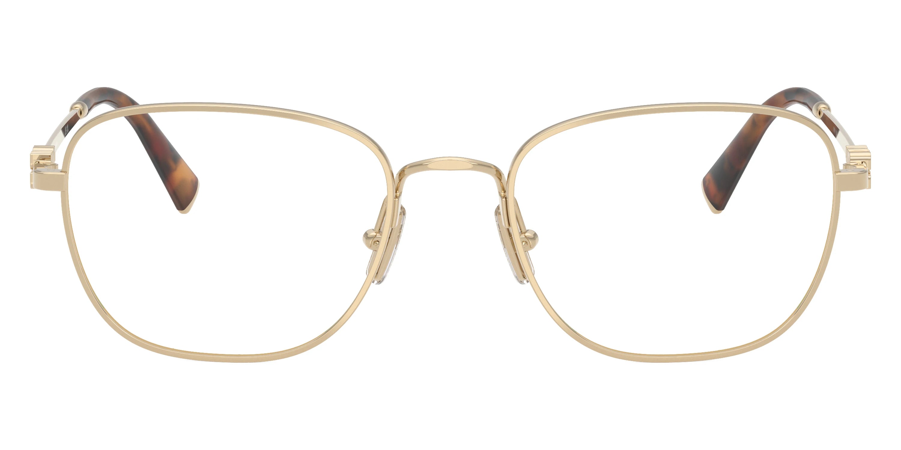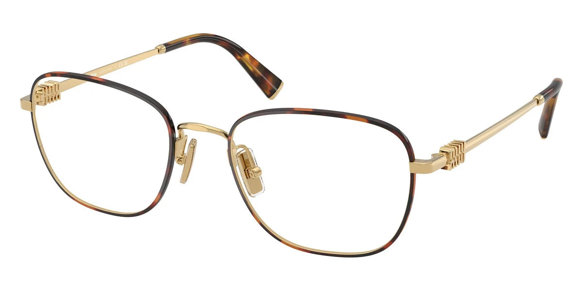 Havana Honey/Gold (14U1O1) Eyeglasses (MU 50WV 14U1O1 53) by Miu Miu. Size: 53-19-140, Shape: Square, Material: Metal.