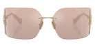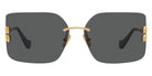 Runway MU 54YS Sunglasses by Miu Miu. The irregular shape design feature a rimless metal frame. This model is available in two different color combinations and sizes. Sunglasses Miu Miu, like clothing and other accessories, are aimed at a daring young generation. Being less expensive than products of its parent company, Prada, however, Miu Miu's frames are made of high quality material. And if it means something for you: sunglasses for both companies are made of eco-friendly organic plastic. Under the brand's name you will find a great variety of designs, extravagant colors, elegant feminine shapes and comfortable fit which ideally match your free and youthful image.