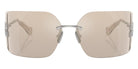 Silver (1BC10F) Sunglasses (Runway MU 54YS 1BC10F 80) by Miu Miu. Size: 80-14-110, Shape: Irregular, Material: Metal.