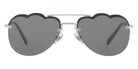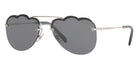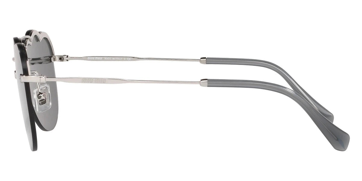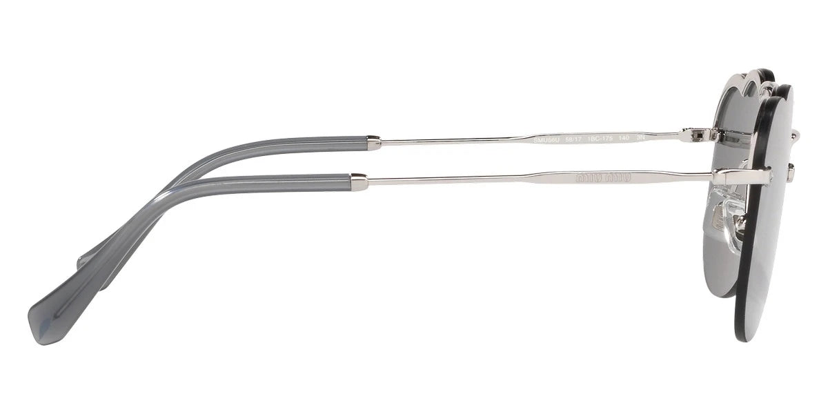 Silver (1BC175) Sunglasses with Dark Gray Flash Silver lenses (MU 56US 1BC175 58) by Miu Miu. Size: 58-17-140, Shape: Irregular, Material: Metal.