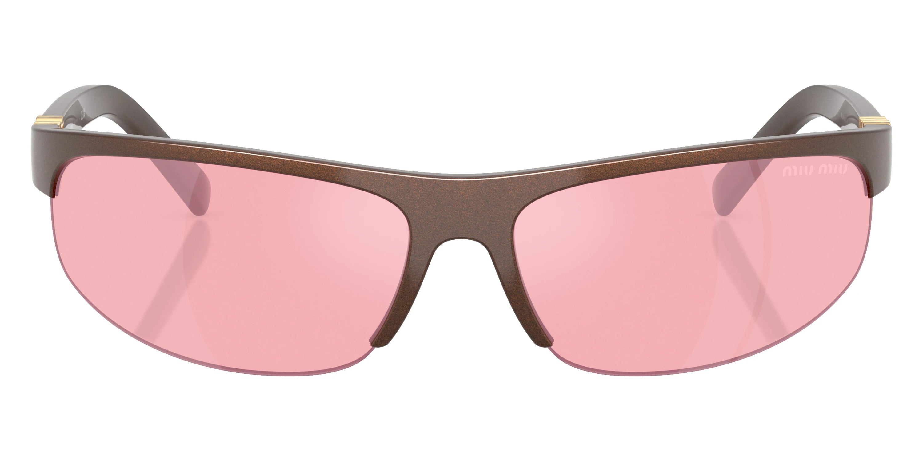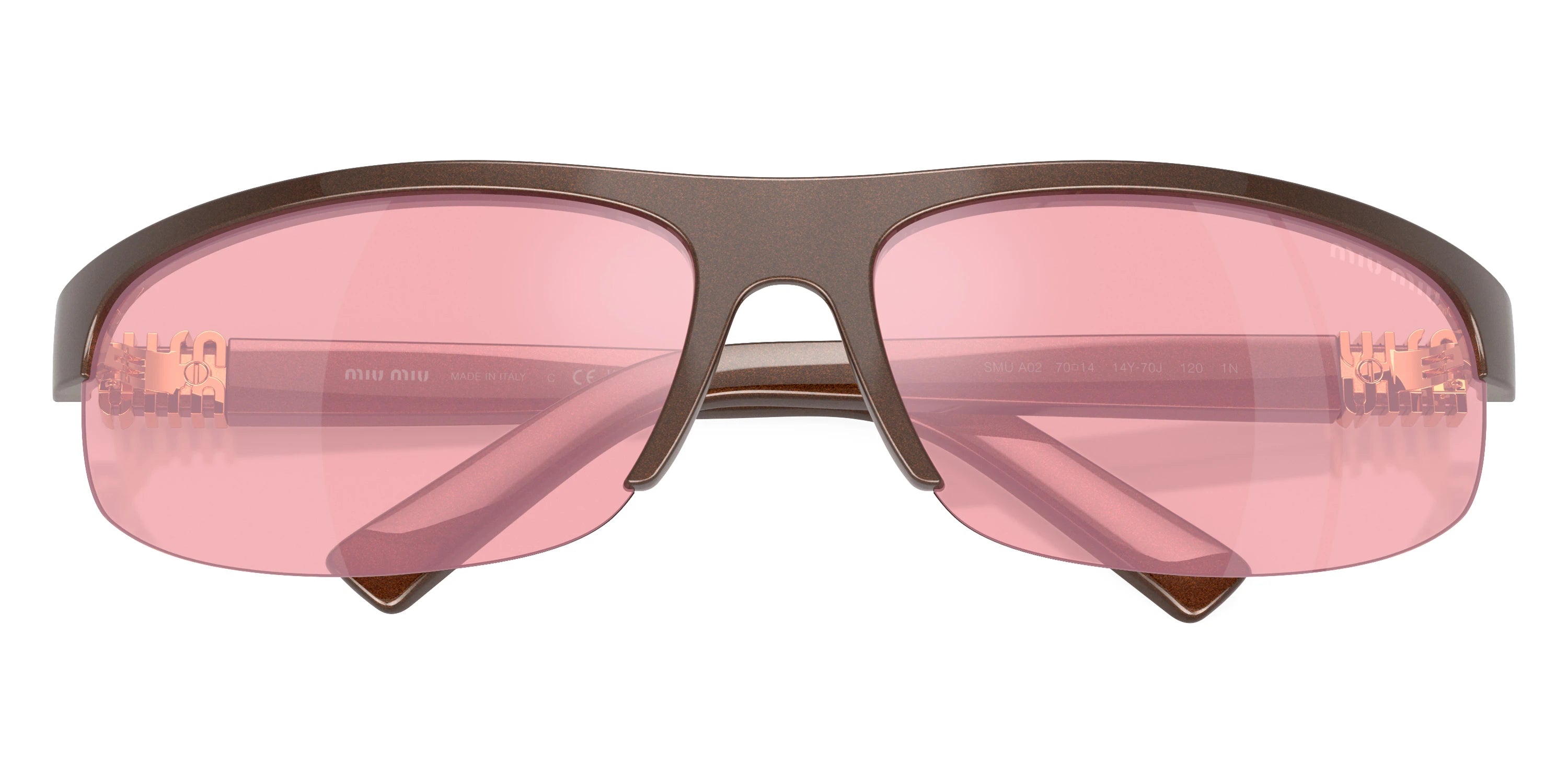 MU A02S Sunglasses by Miu Miu. The oval shape design feature a semi rimless injected and metal frame. This model is available in four different color combinations and sizes. Sunglasses Miu Miu, like clothing and other accessories, are aimed at a daring young generation. Being less expensive than products of its parent company, Prada, however, Miu Miu's frames are made of high quality material. And if it means something for you: sunglasses for both companies are made of eco-friendly organic plastic. Under the brand's name you will find a great variety of designs, extravagant colors, elegant feminine shapes and comfortable fit which ideally match your free and youthful image.