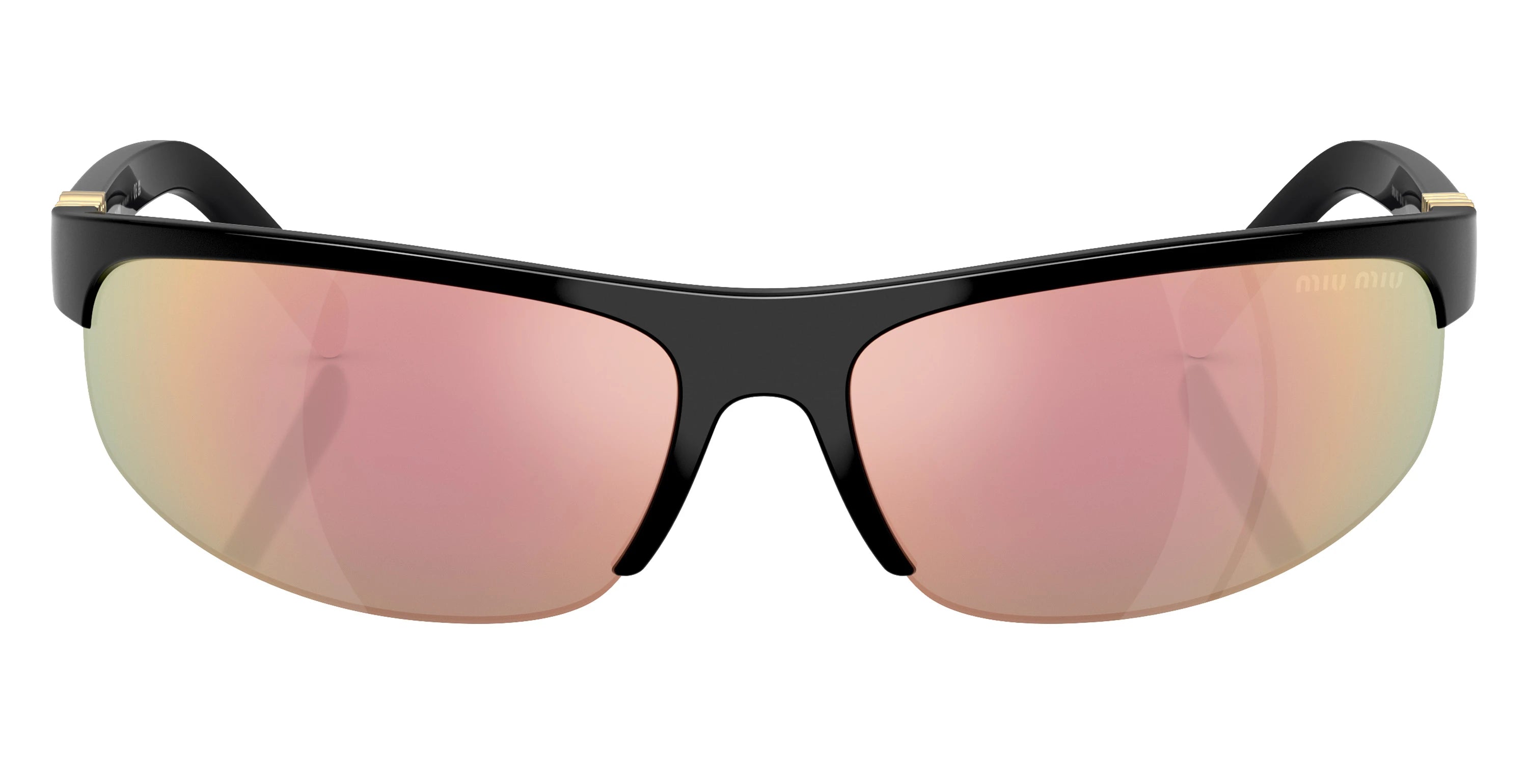 Black (1AB90J) Sunglasses with Dark Gray Mirrored Pink lenses (MU A02S 1AB90J 70) by Miu Miu. Size: 70-14-120, Shape: Oval, Material: Injected and Metal.