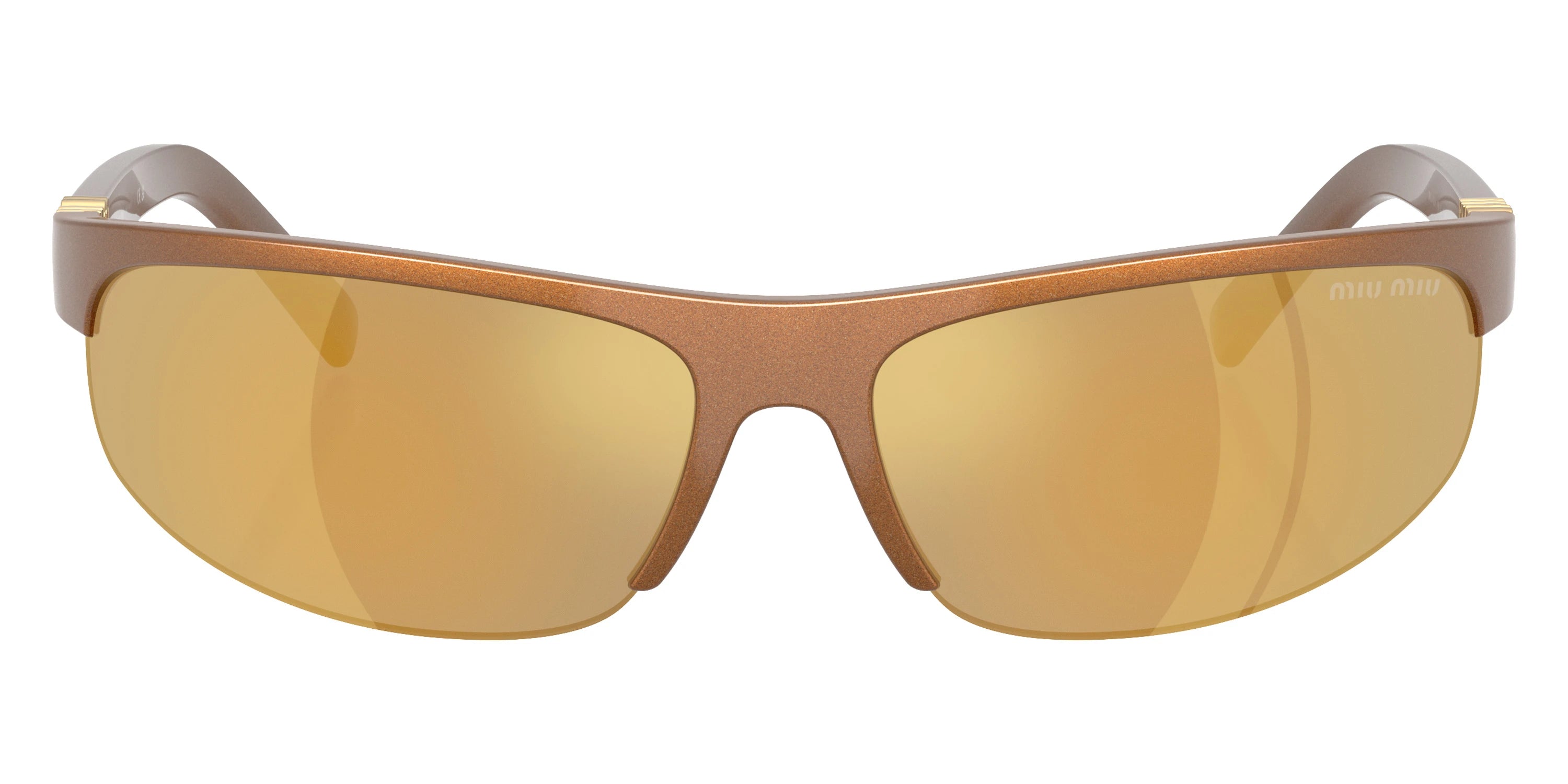 Rust Metal (16Y8G1) Sunglasses with Brown Mirrored Gold lenses (MU A02SF 16Y8G1 68) by Miu Miu. Size: 68-15-135, Shape: Oval, Material: Injected and Metal.