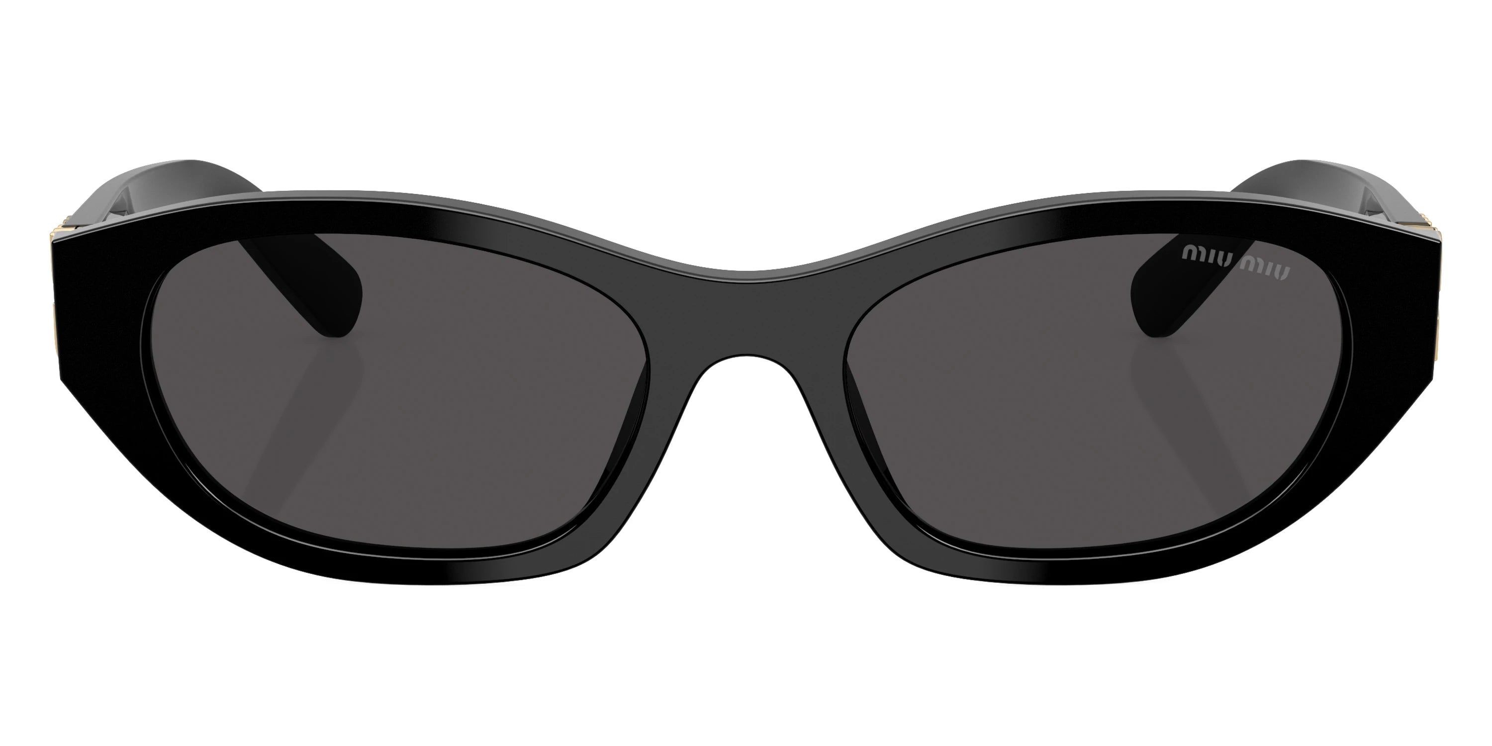 MU A03SF Sunglasses by Miu Miu. The irregular shape design feature a full rim acetate and metal frame. This model is available in five different color combinations and sizes. Sunglasses Miu Miu, like clothing and other accessories, are aimed at a daring young generation. Being less expensive than products of its parent company, Prada, however, Miu Miu's frames are made of high quality material. And if it means something for you: sunglasses for both companies are made of eco-friendly organic plastic. Under the brand's name you will find a great variety of designs, extravagant colors, elegant feminine shapes and comfortable fit which ideally match your free and youthful image.